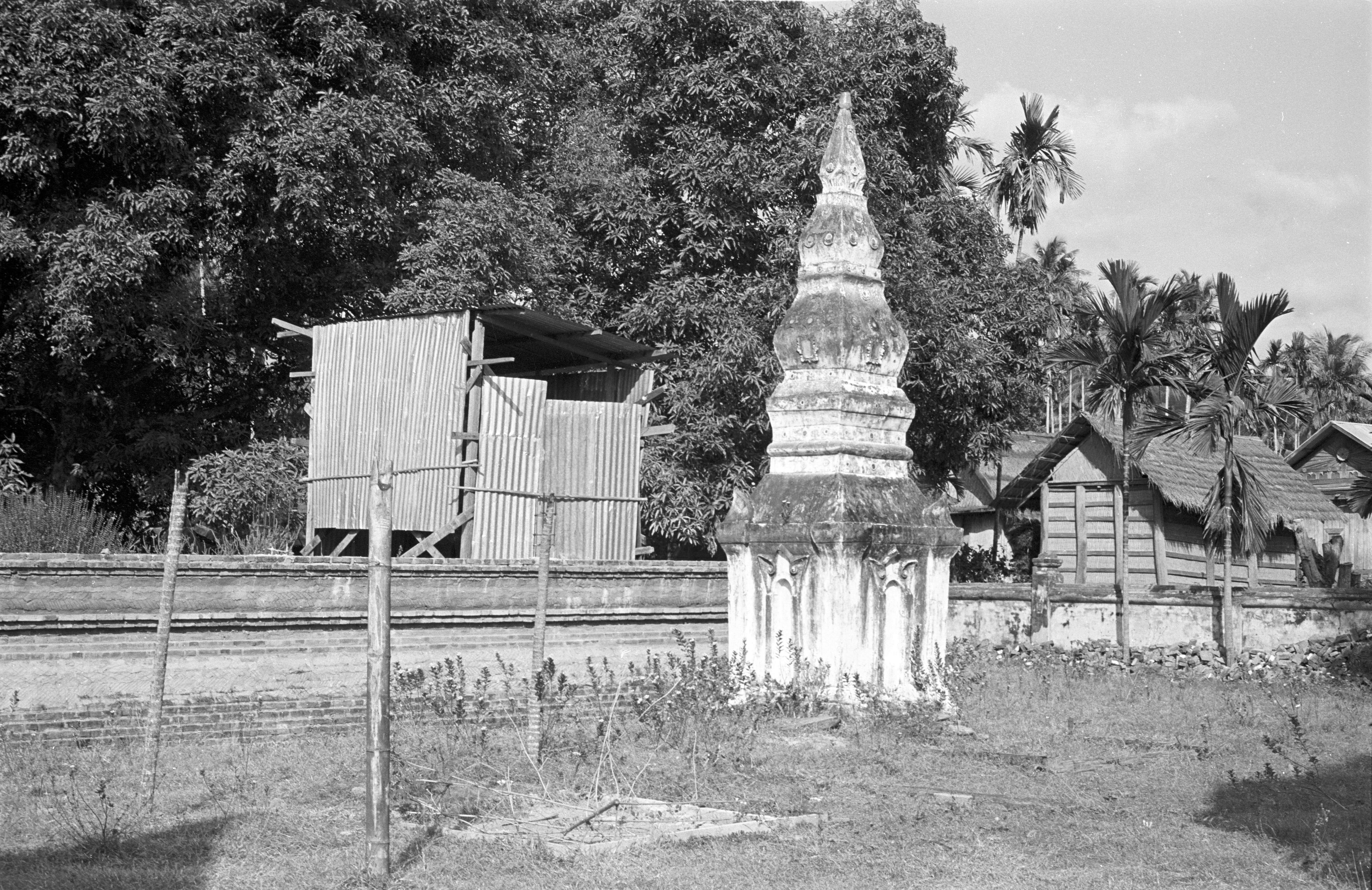 Thāt (reliquary) in wat, 2 photos, Ban Nong Sung, Changwat Mukdahan, Thailand, November 1963