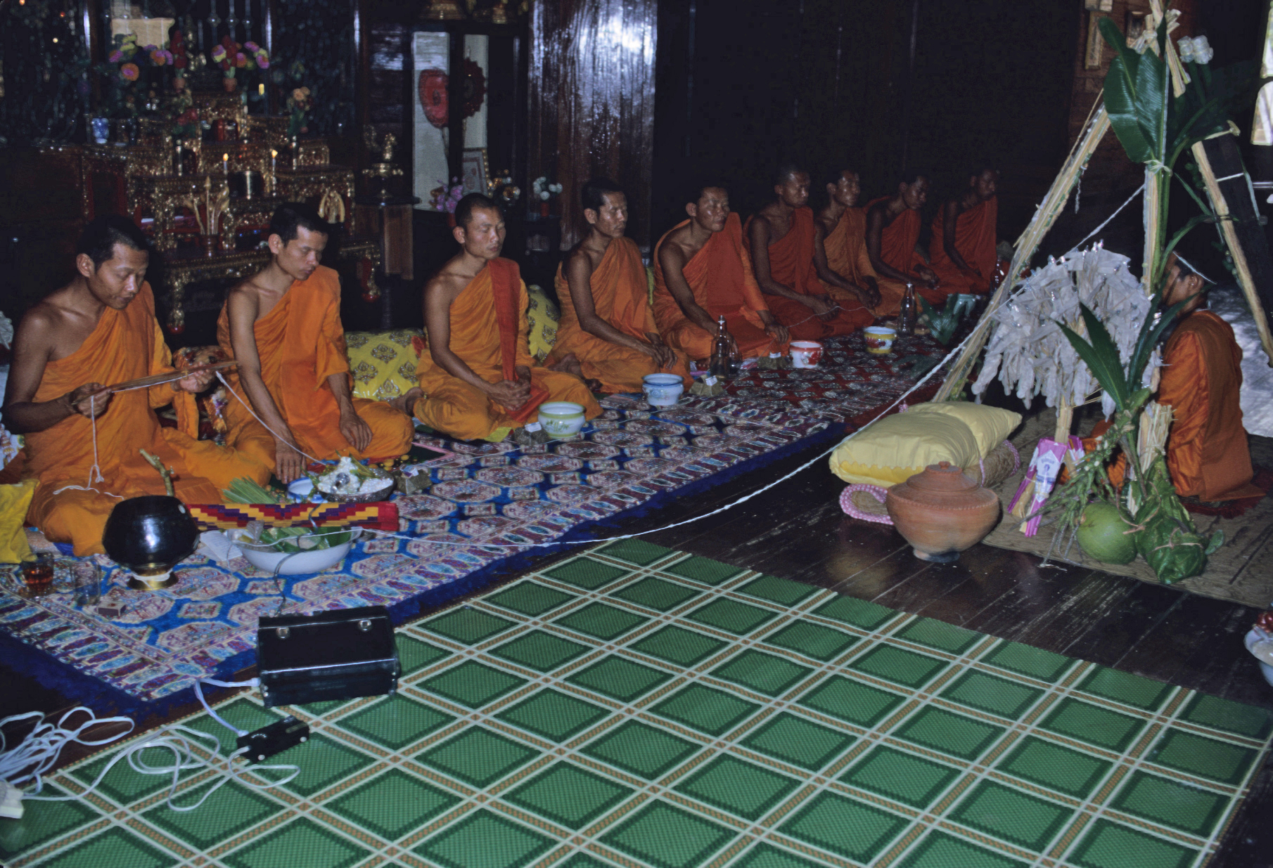 Süp chātā, extension of life ritual at Wat Kittiwong, 2 photos, Amphoe Mae Sariang, Changwat Mae Hong Son, Thailand, April 1968