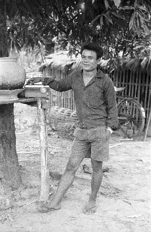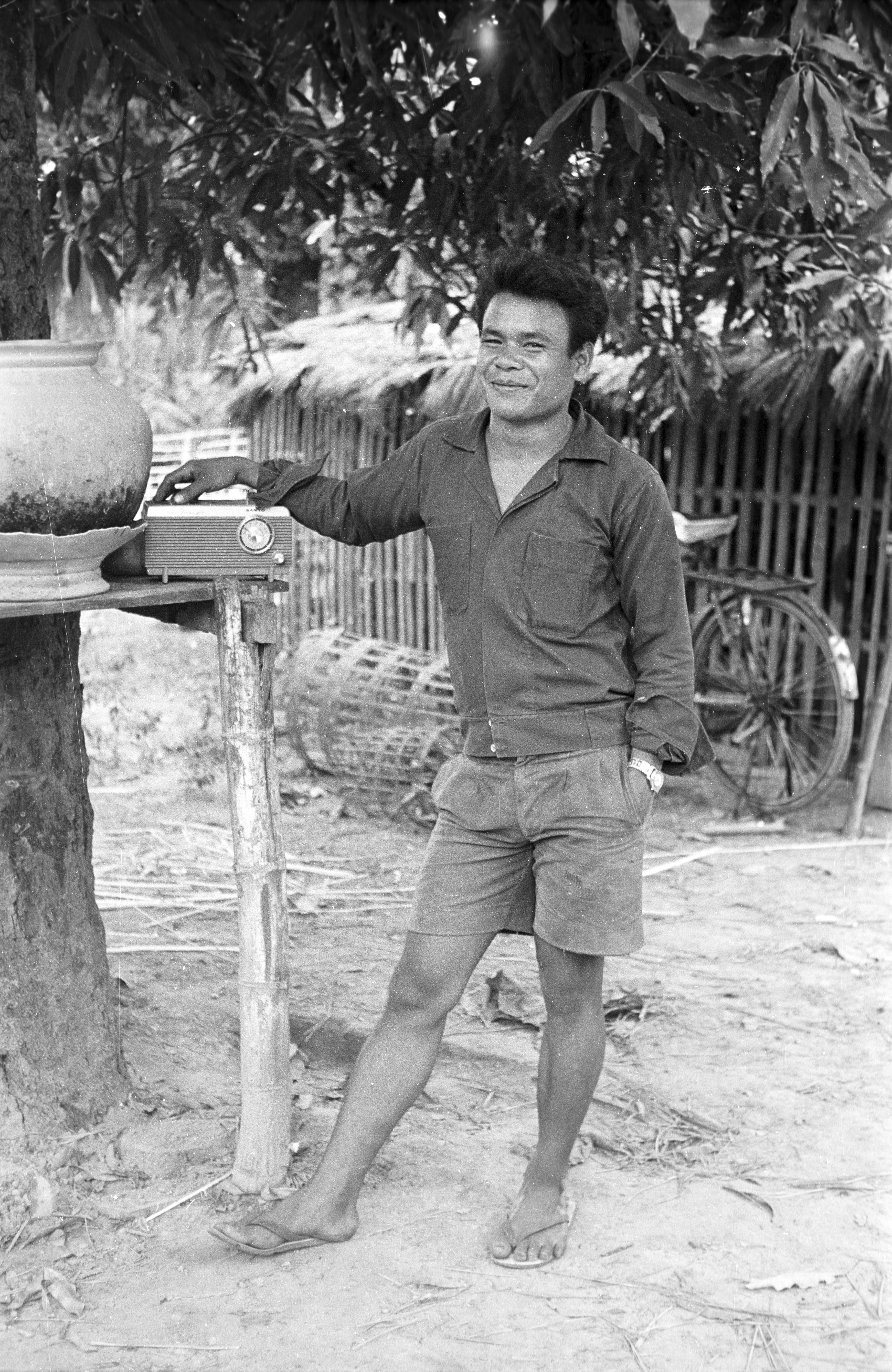 Man, who assisted Charles F. Keyes, with radio he bought with earnings from Biff, Ban Nong Tun, Amphoe Muang, Changwat Maha Sarakham, Thailand, September 1963