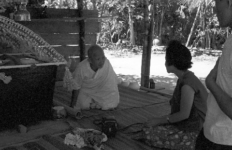 Coffin of deceased nun at nunnery, 3 photos, Ban Nong Sung, Changwat Mukdahan, Thailand, December 1963