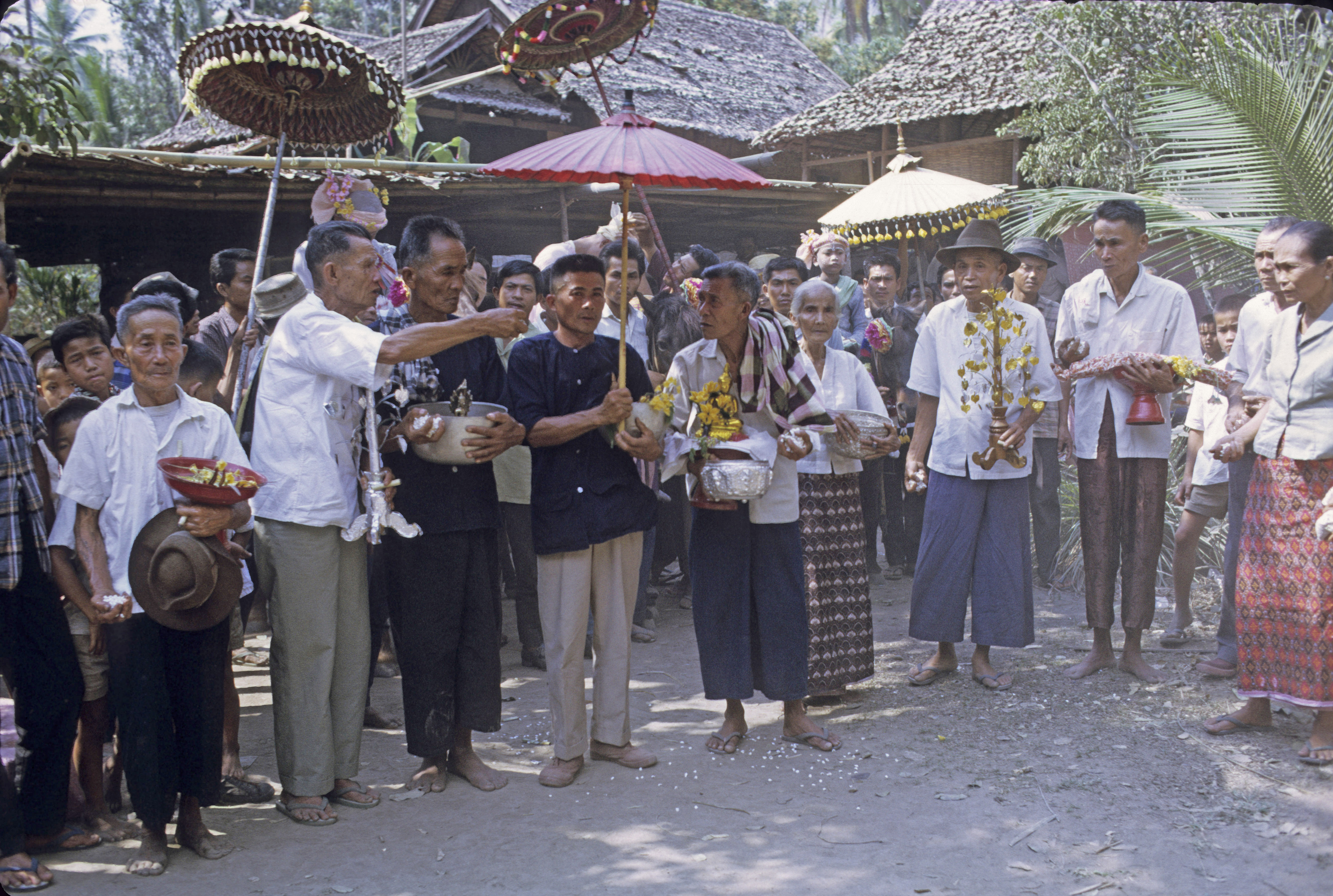 Ordination: Procession of the "jewel child" (hāē lūk kāēo) – old men, Ban Khapuang, Amphoe Mae Sariang, Changwat Mae Hong Son, Thailand, March 1968