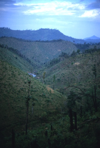 Views of Karen upland swiddens and terraced rice fields from trail on way back from Bān Phāpae to Mae Sariang, 3 photos, Ban Pa Pae, Thambon Pa Pae, Amphoe Mae Sariang, Changwat Mae Hong Son, Thailand, January 1968