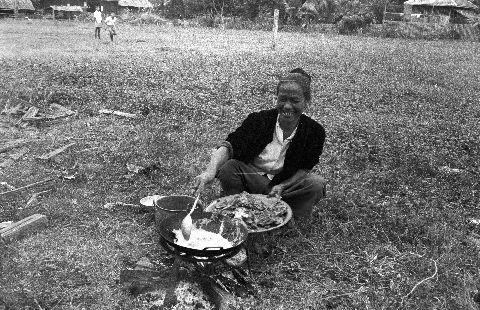 B. Pōng School -- preparing food at school, 2 photos, Mae Hong Son Province, Thailand, December 1967
