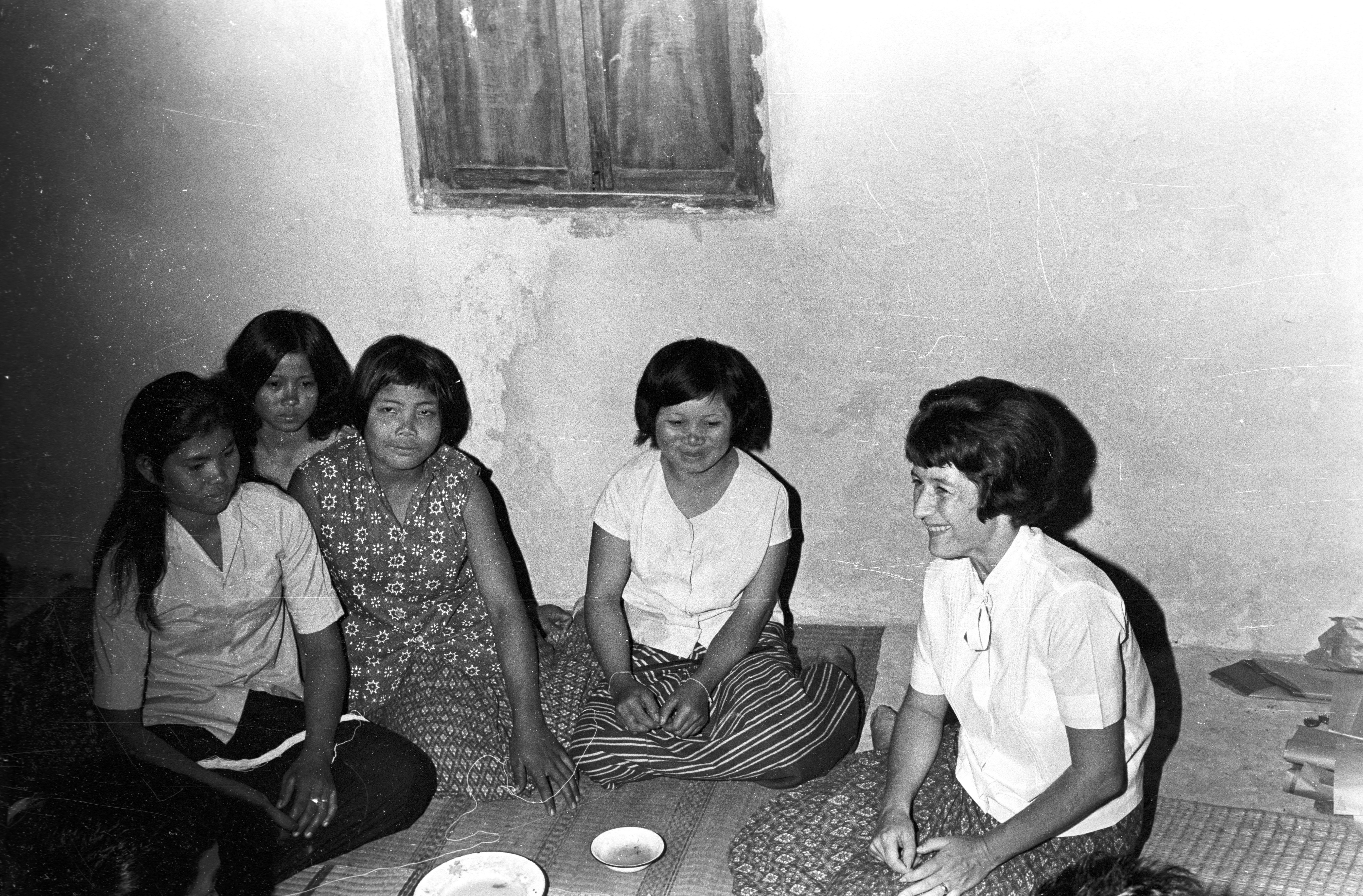 Jane Keyes with village women, Maha Sarakham Province, Thailand, November 1967 [not good photo]