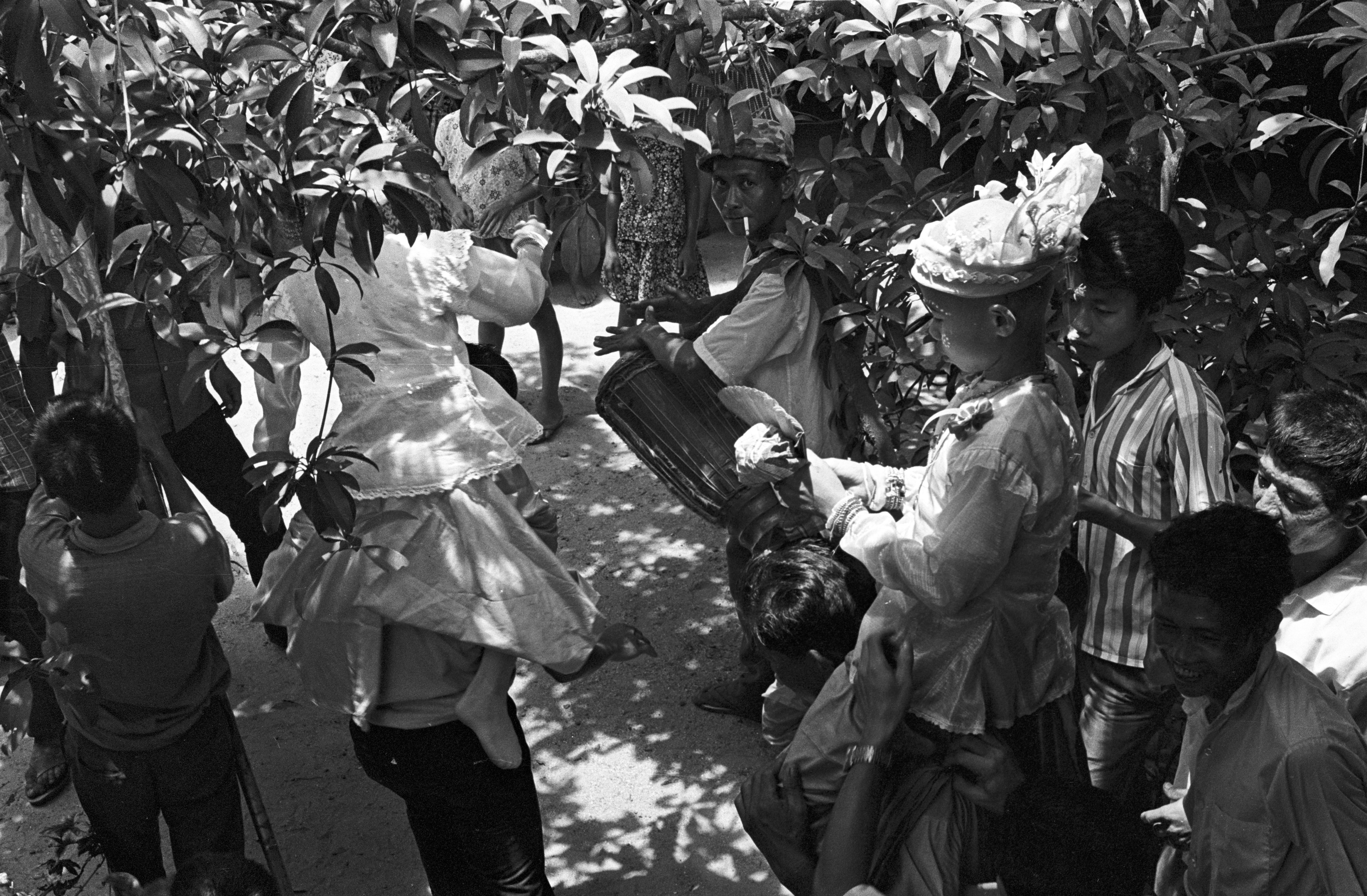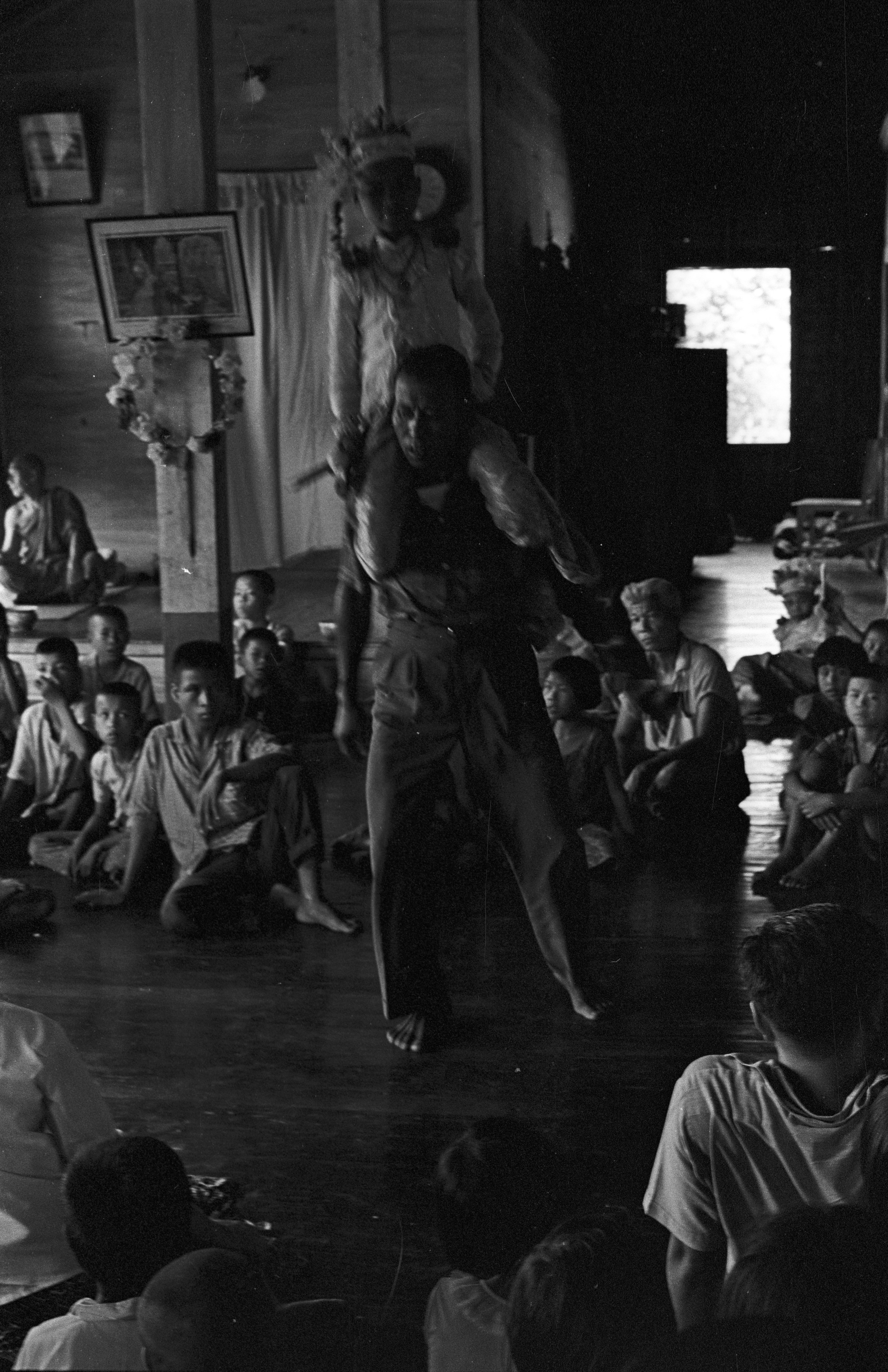 Procession and arrival at Wat Ommarawat of “jewel children” (lūk kāēo): boys who are candidates for ordination as novices at Wat Ommarawat, 8 photos, Amphoe Mae Sariang, Changwat Mae Hong Son, Thailand, May 1968