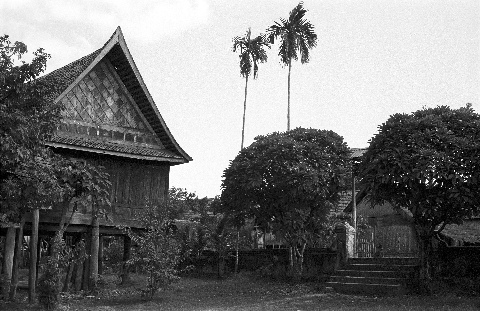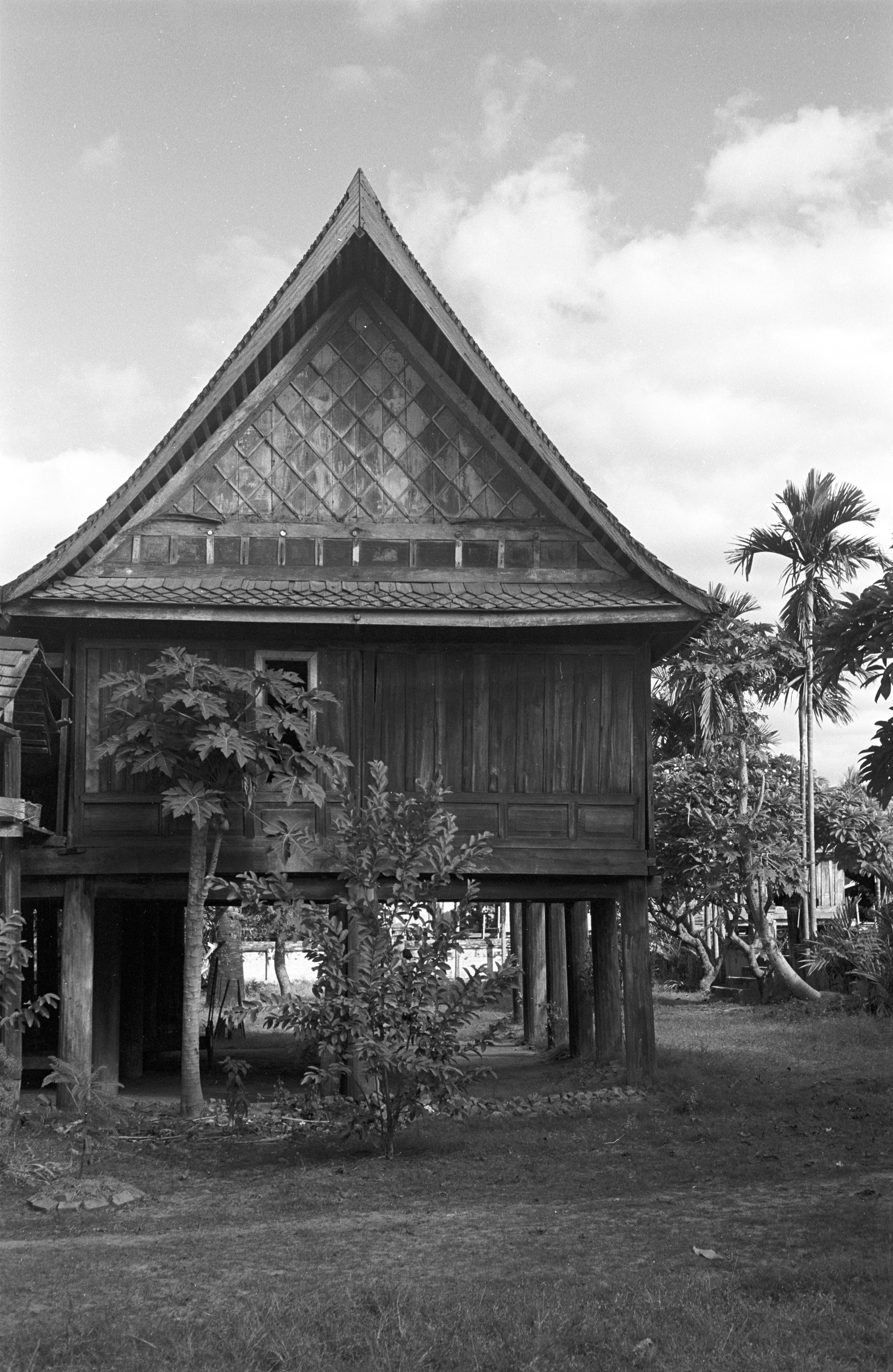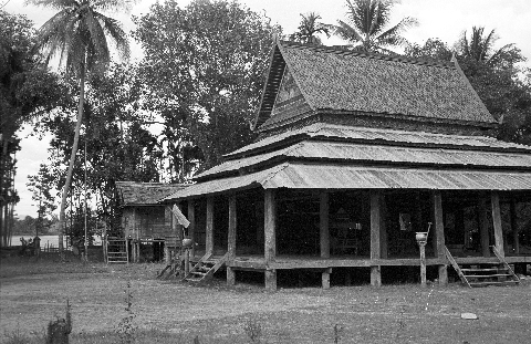 Building in wat, 3 photos, Ban Nong Sung, Changwat Mukdahan, Thailand, November 1963
