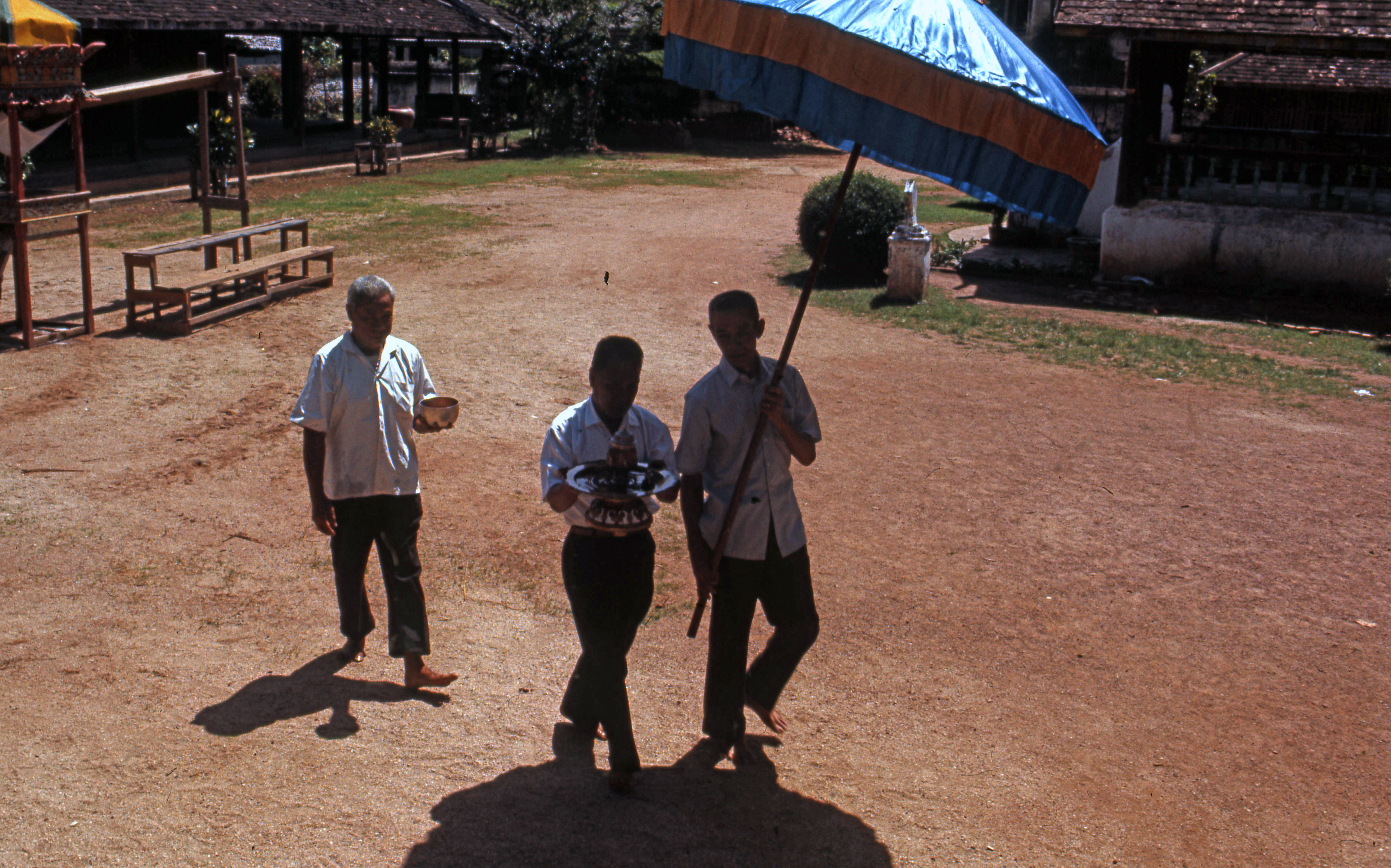 End of lent at Wat Kittiwong – bathing relic, 4 photos; laymen carrying relic, 1 photo, Amphoe Mae Sariang, Changwat Mae Hong Son, Thailand, October 1968