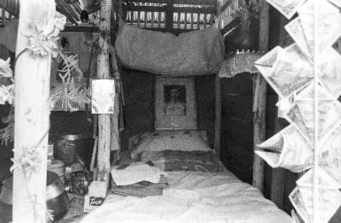 Pôi Khao Sang (rite of offering house and goods to make merit for a deceased person): goods for the deceased, Amphoe Mae Sariang, Changwat Mae Hong Son, Thailand, March 1968