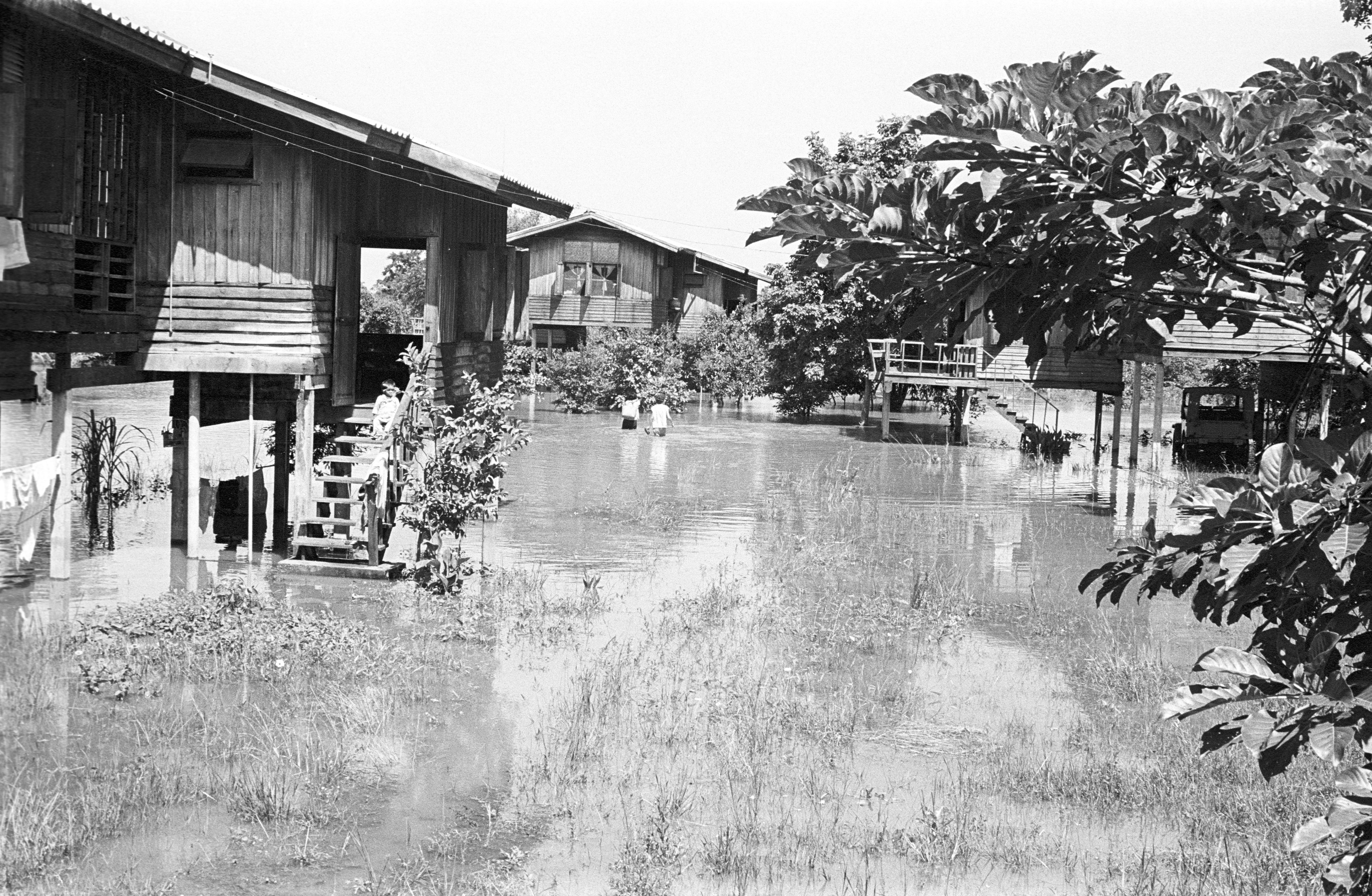 Flooding at Teachers' College, 5 photos, Ban Nong Tun, Amphoe Muang, Changwat Maha Sarakham, Thailand, October 1963