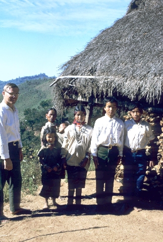 Villagers with Biff (Charles F. Keyes), Ban Dong, Thambon Huai Hom, Amphoe Mae Sariang, Changwat Mae Hong Son, Thailand, January 1968