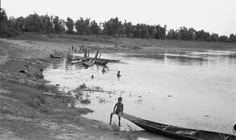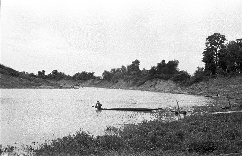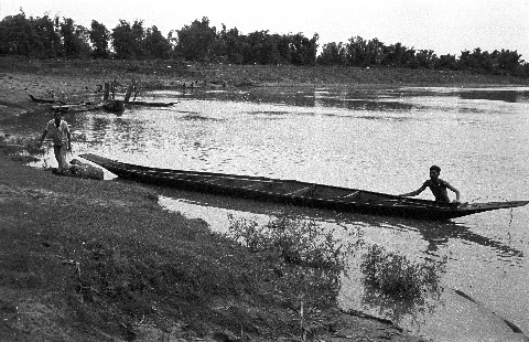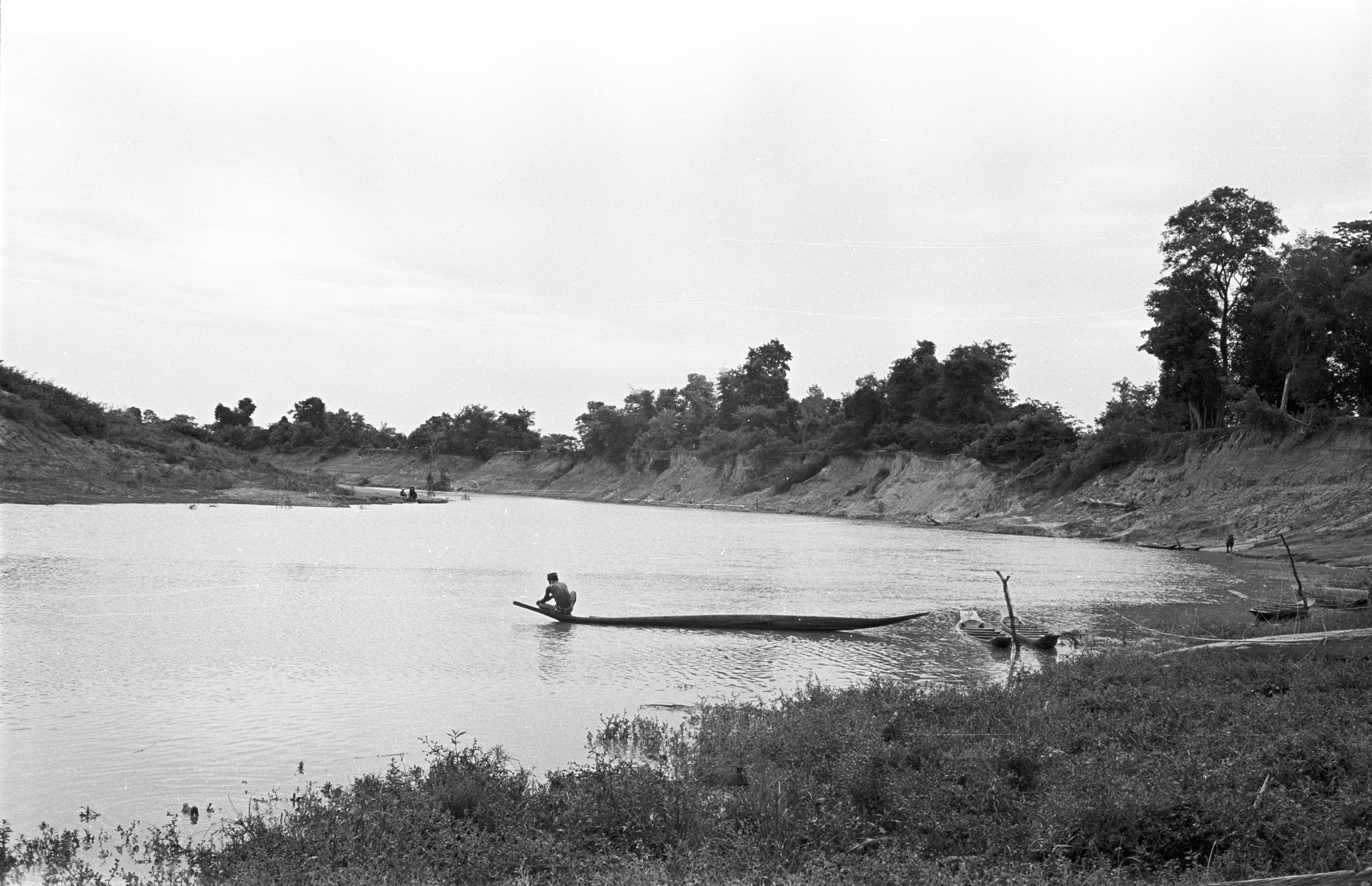 Pirogue on Chi River, 3 photos, Ban Nong Kha, Amphoe Muang, Changwat Maha Sarakham, Thailand, June 1963