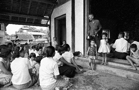 Wat Sitthimongkhon: salākhaphat ceremony, women and children outside, Mae Hong Son Province, Thailand, September 1967