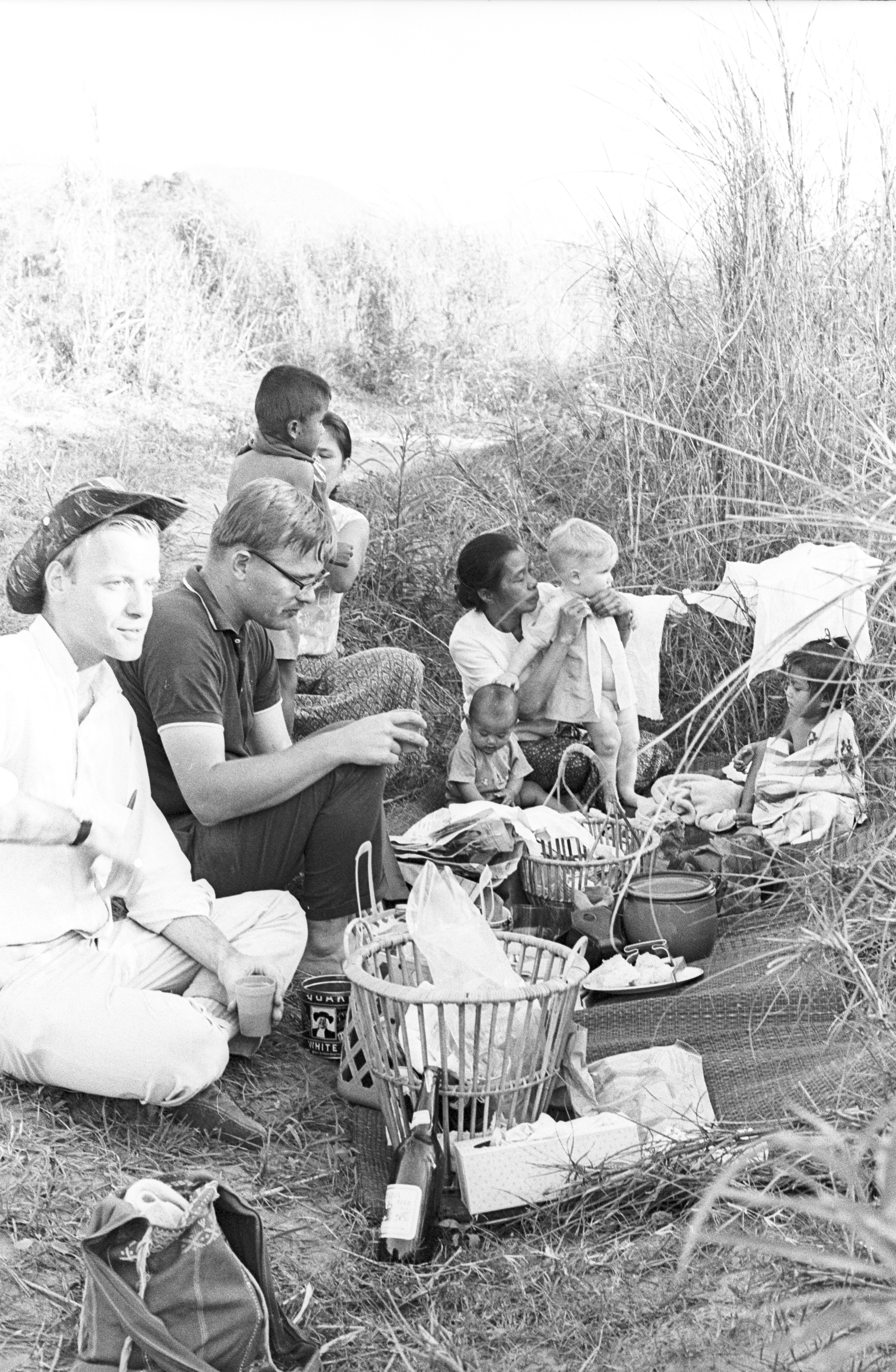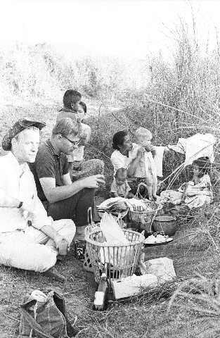 Family picnic at Huai Luang, 2 photos, Amphoe Mae Sariang, Changwat Mae Hong Son, Thailand, February 1968