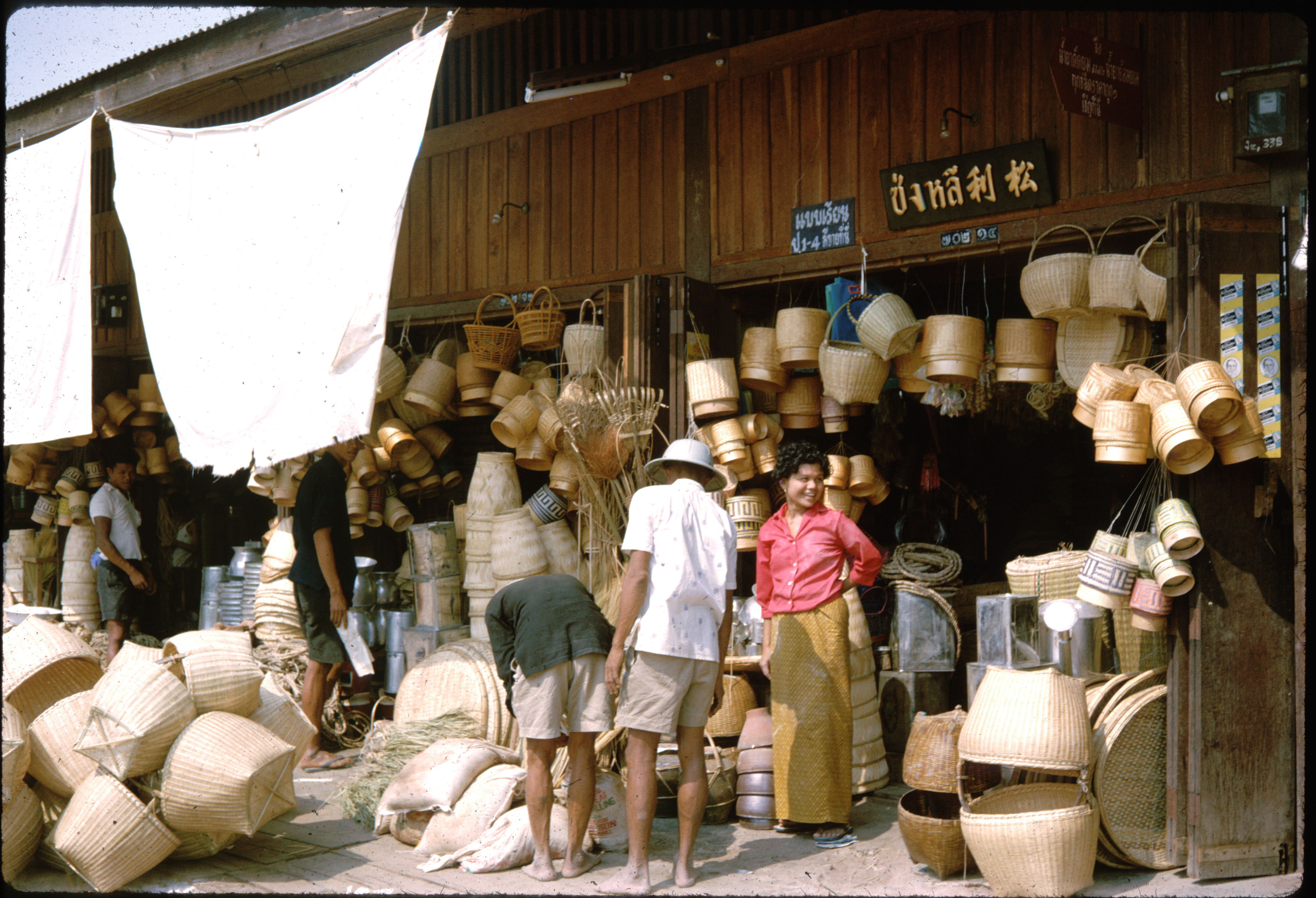 Bamboo and wicker shop in Mahasarakham town, Changwat Maha Sarakham, 1963 or 1964