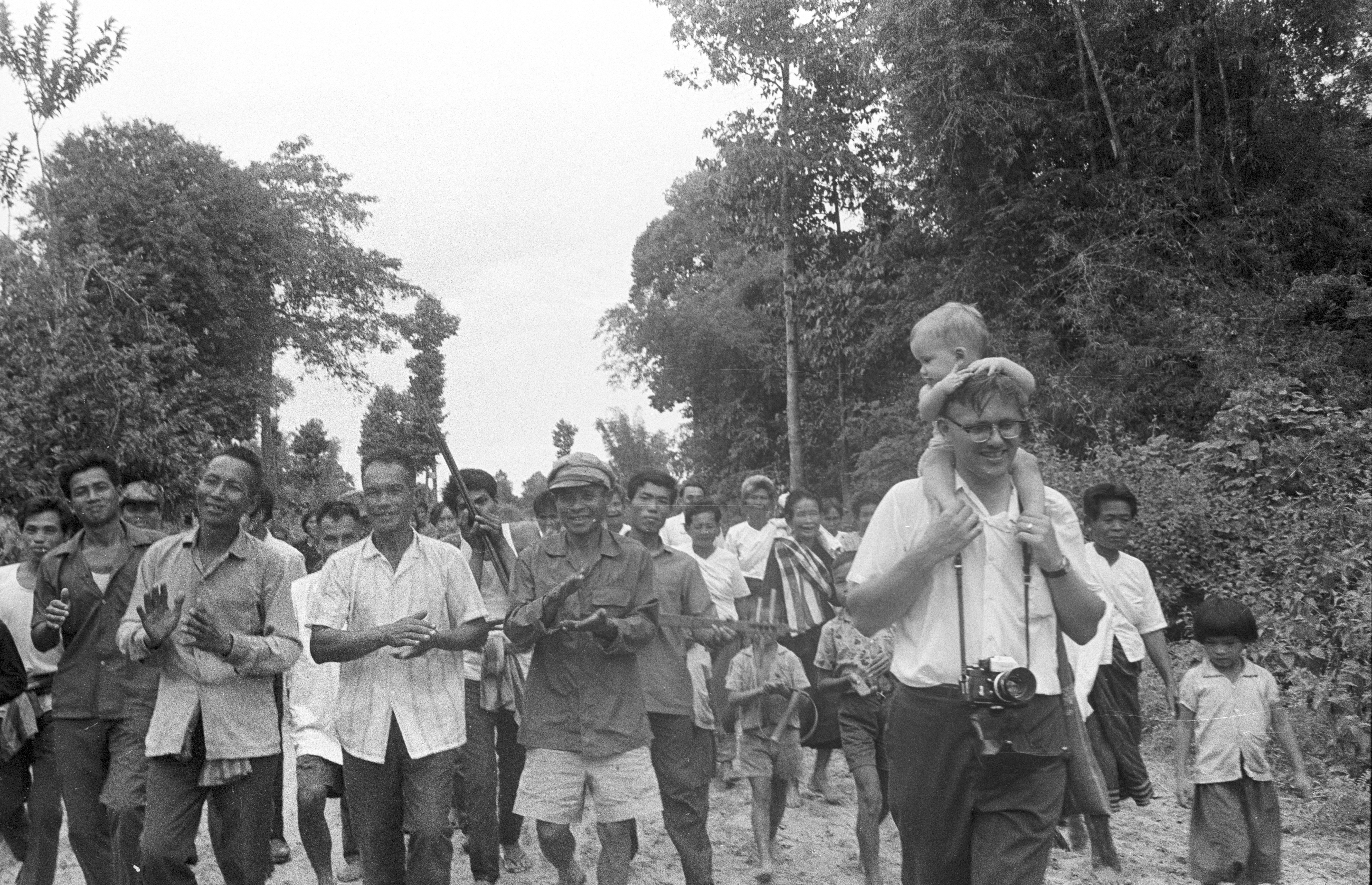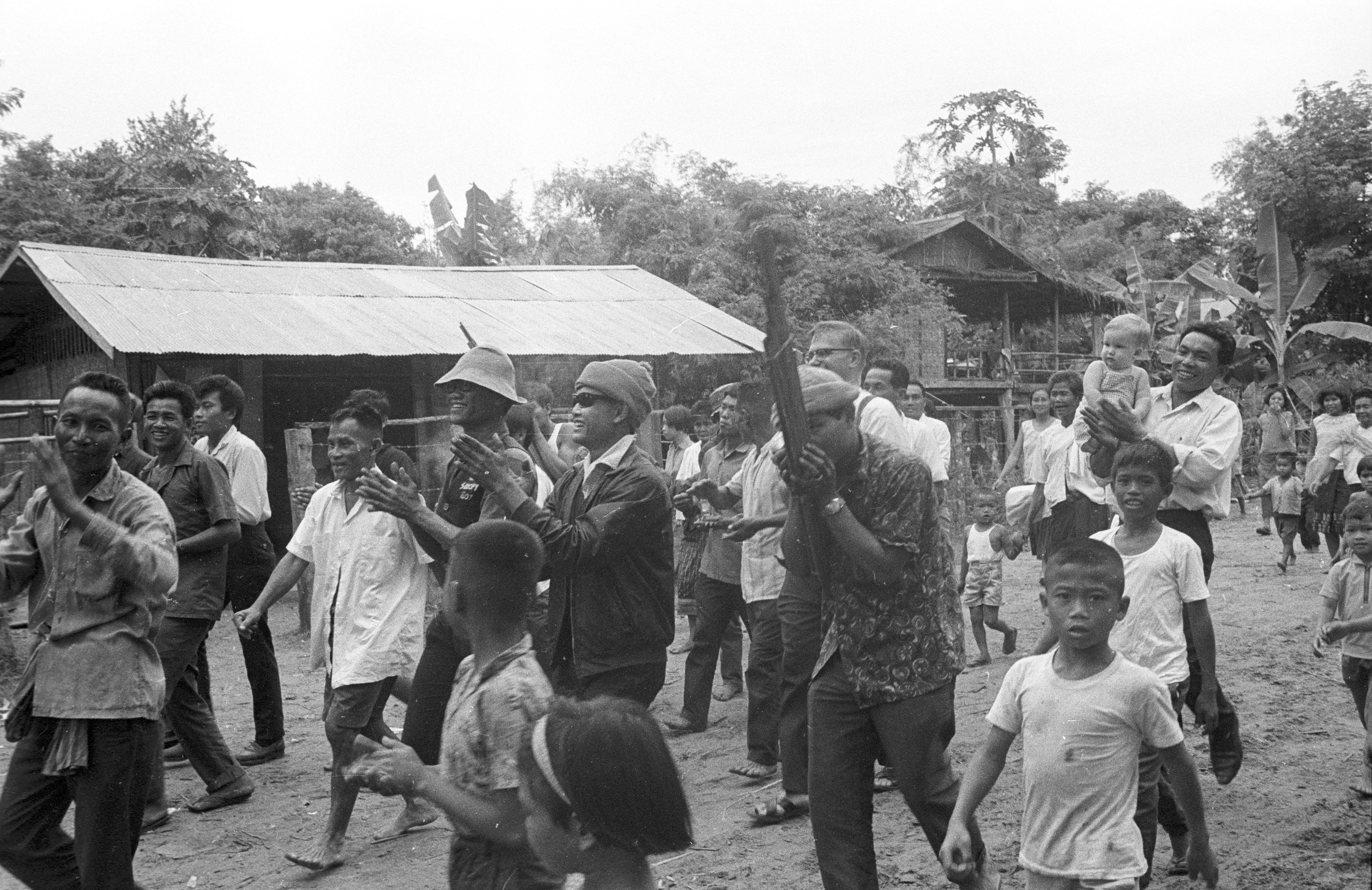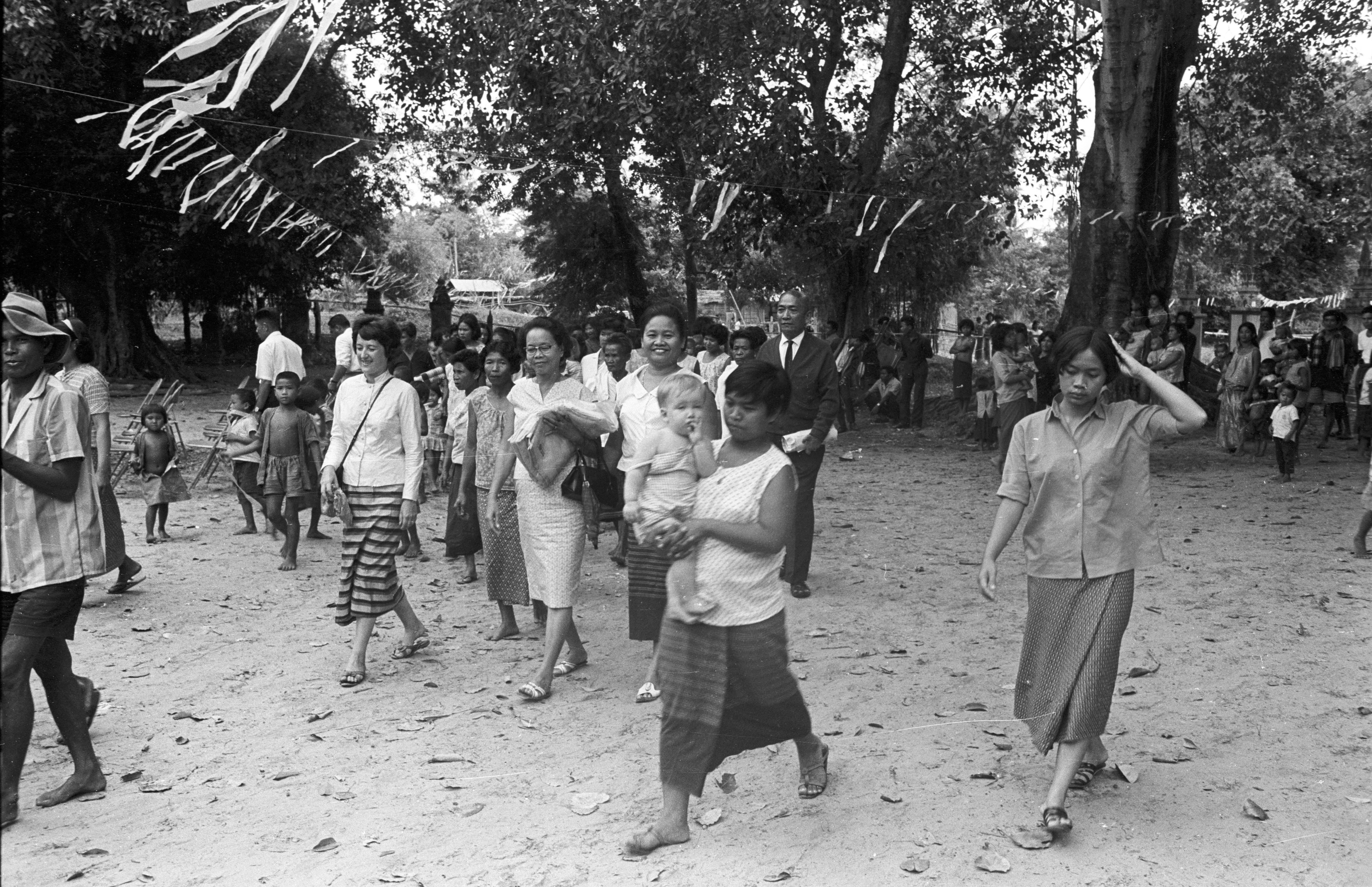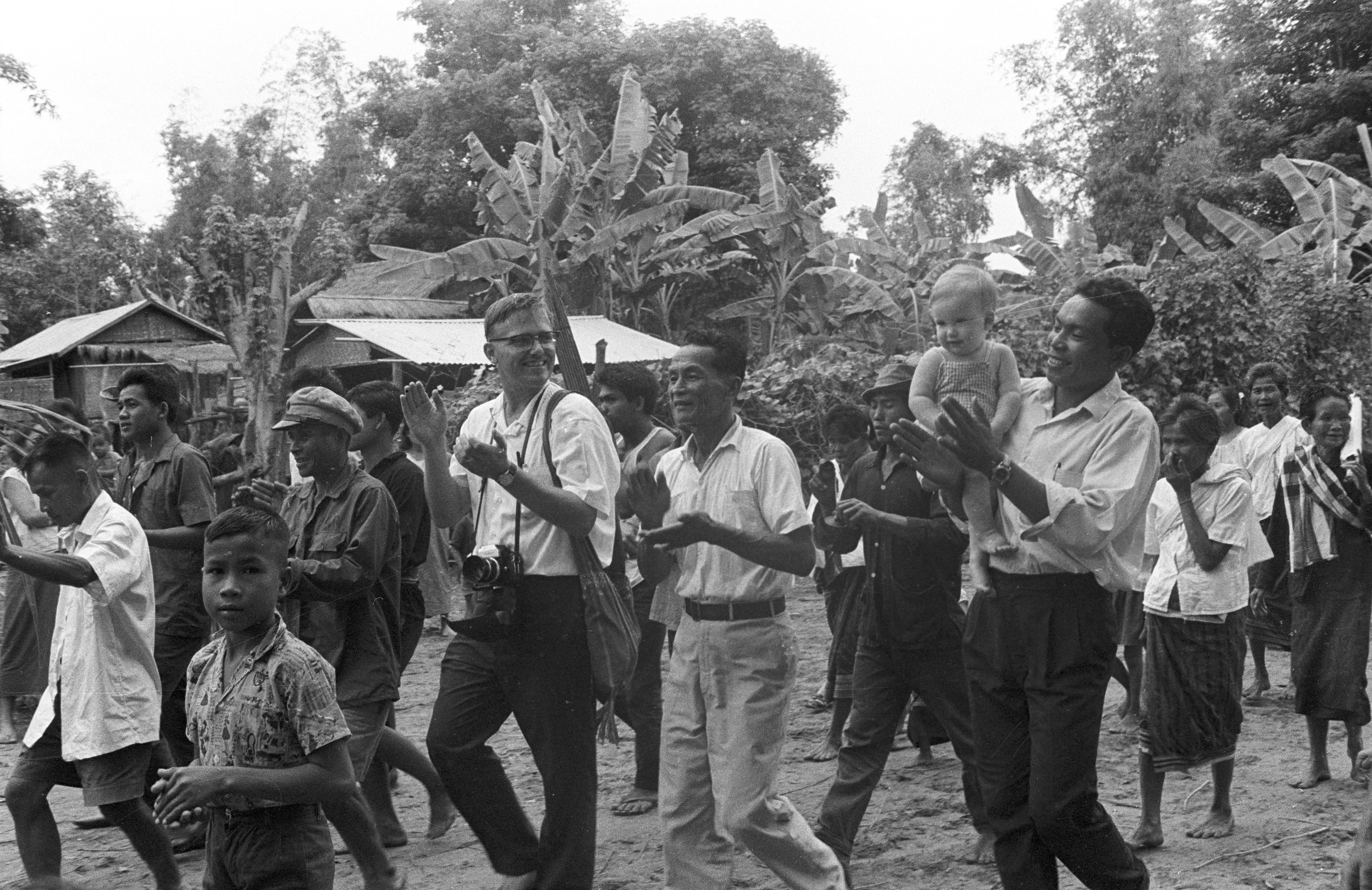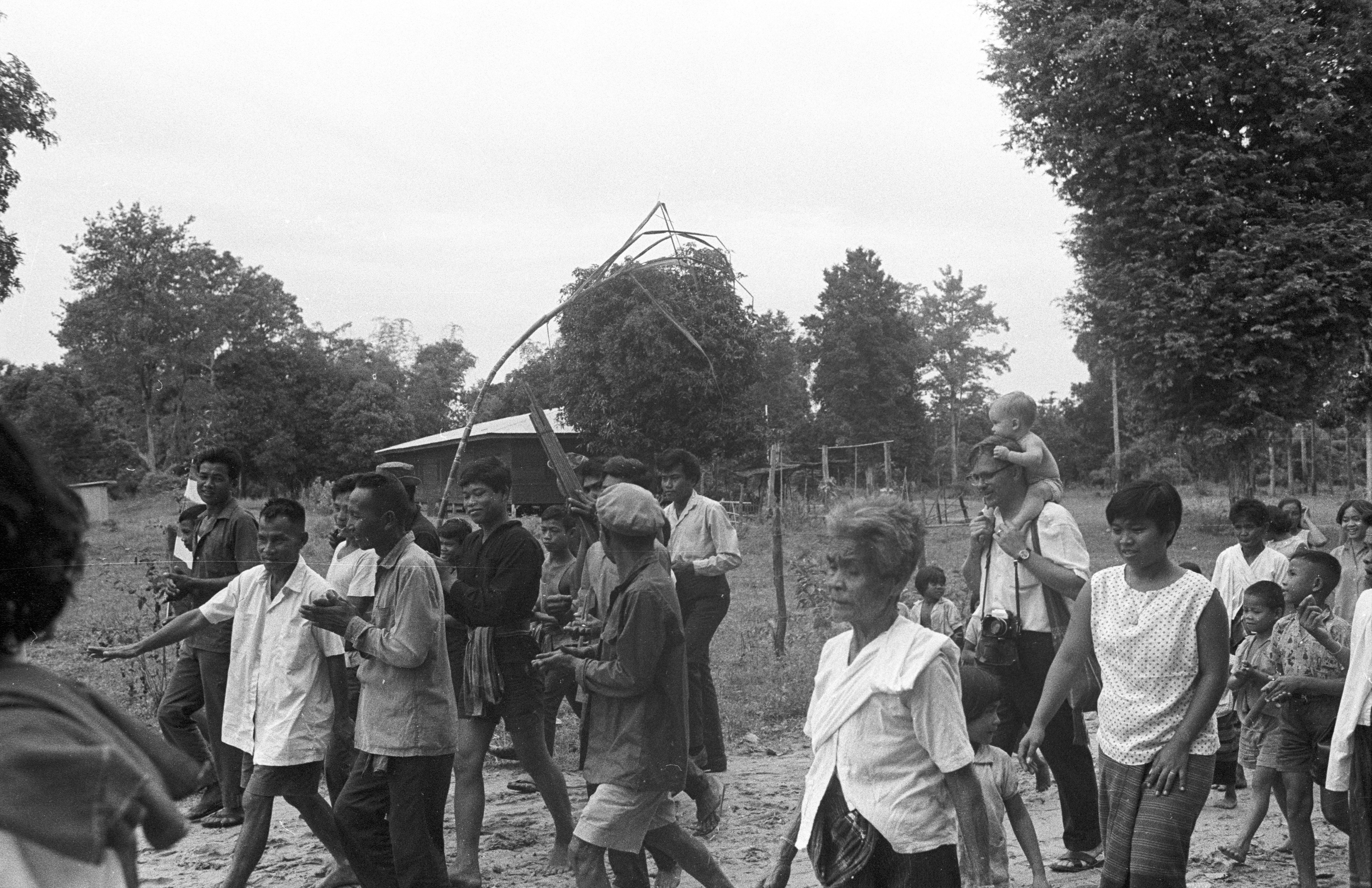 Keyes family members in procession: Biff and Nick Keyes, Nick Keyes with Ngao, Jane, 7 photos, Maha Sarakham Province, Thailand, November 1967