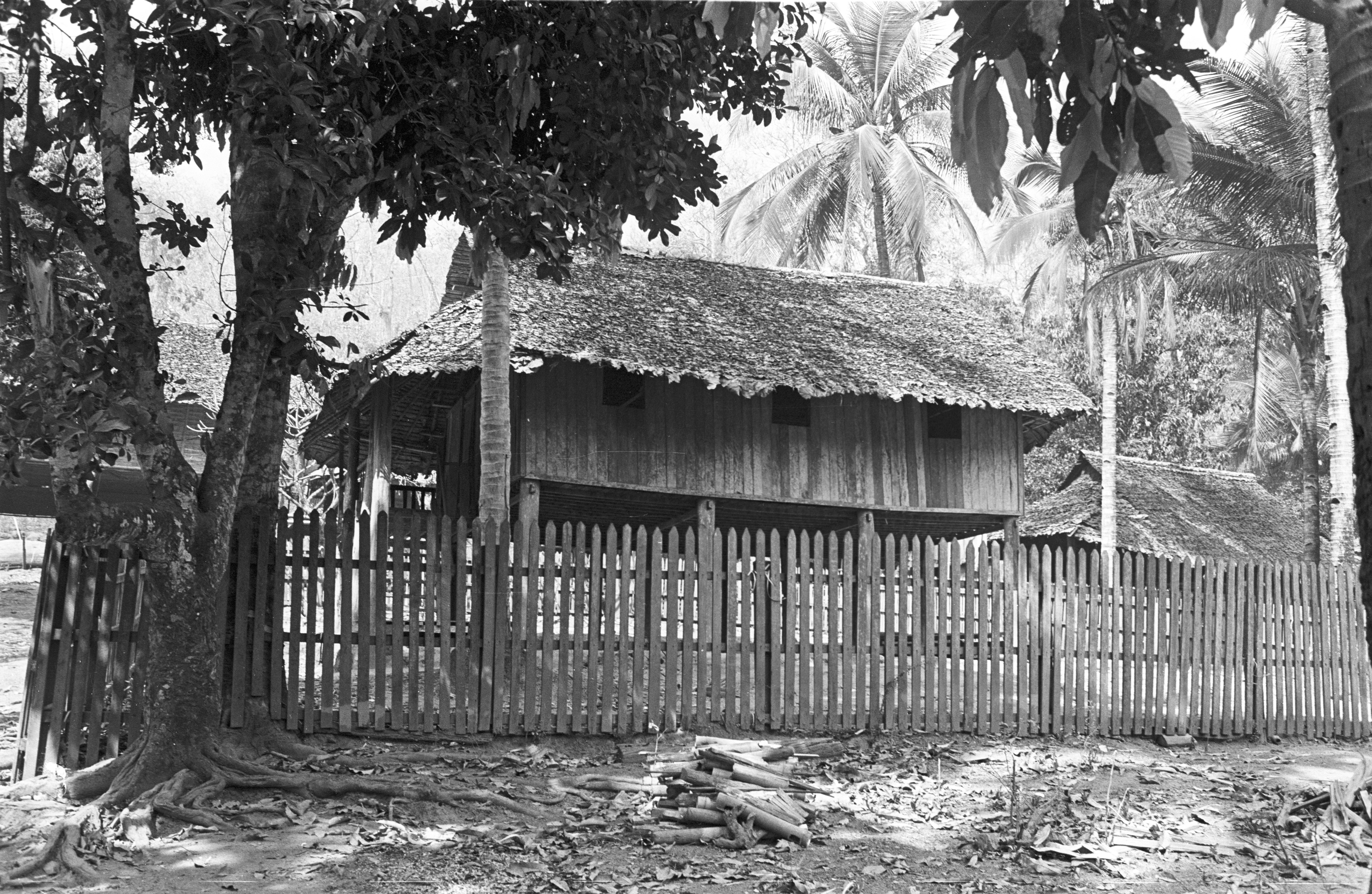 S'gaw Karen village: village house, Ban Mae Top Nuea, Amphoe Mae Sariang, Changwat Mae Hong Son, Thailand, March 1968