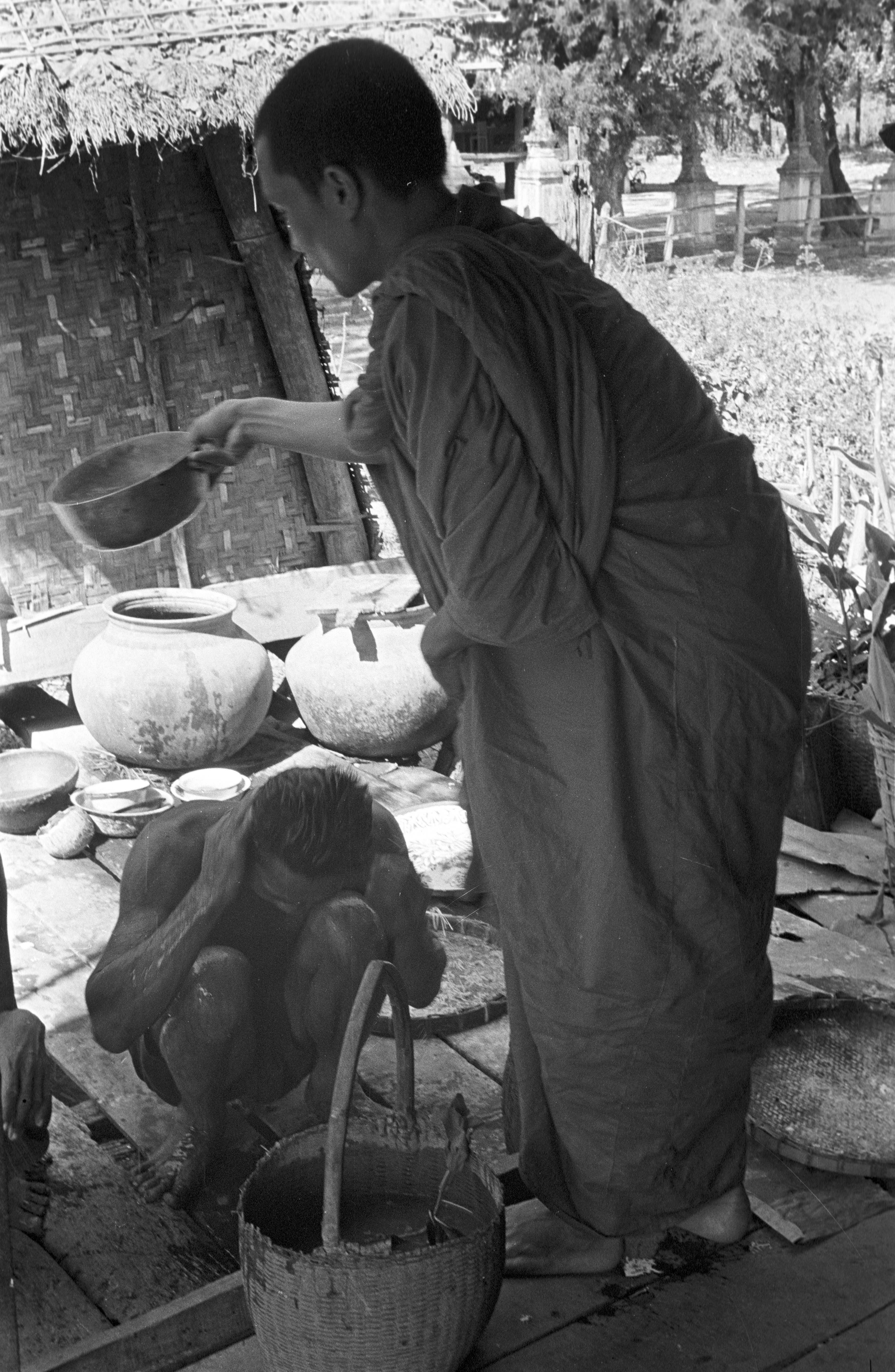 Water pouring at the end of thambun bān at a house, Changwat Maha Sarakham, Thailand, January 1964