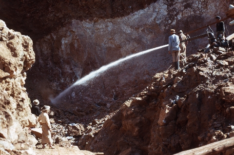 Hydraulic lead mining with Pwo Karen workers, near Burmese border, , Amphoe Mae Sariang, Changwat Mae Hong Son, Thailand, November 1968