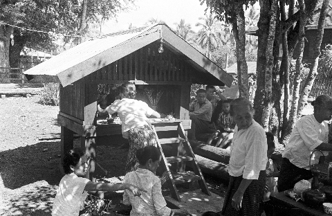 Dedication of Sān Čao, small shrine, 3 photos, Mae Hong Son Province, Thailand, November 1967