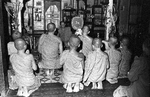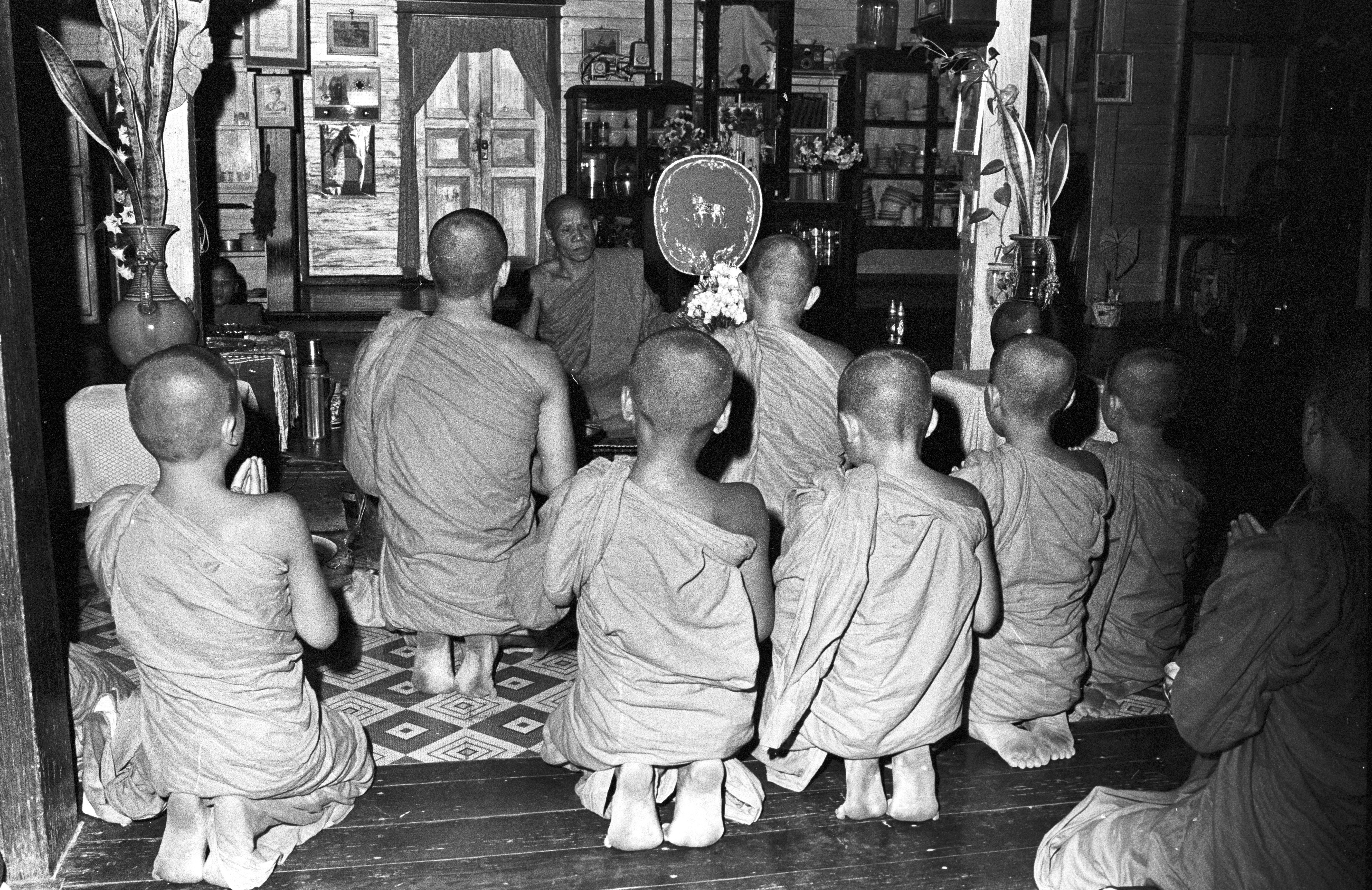 Wat Uthayārom: monks and novices, Amphoe Mae Sariang, Changwat Mae Hong Son, Thailand, April 1968