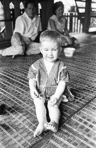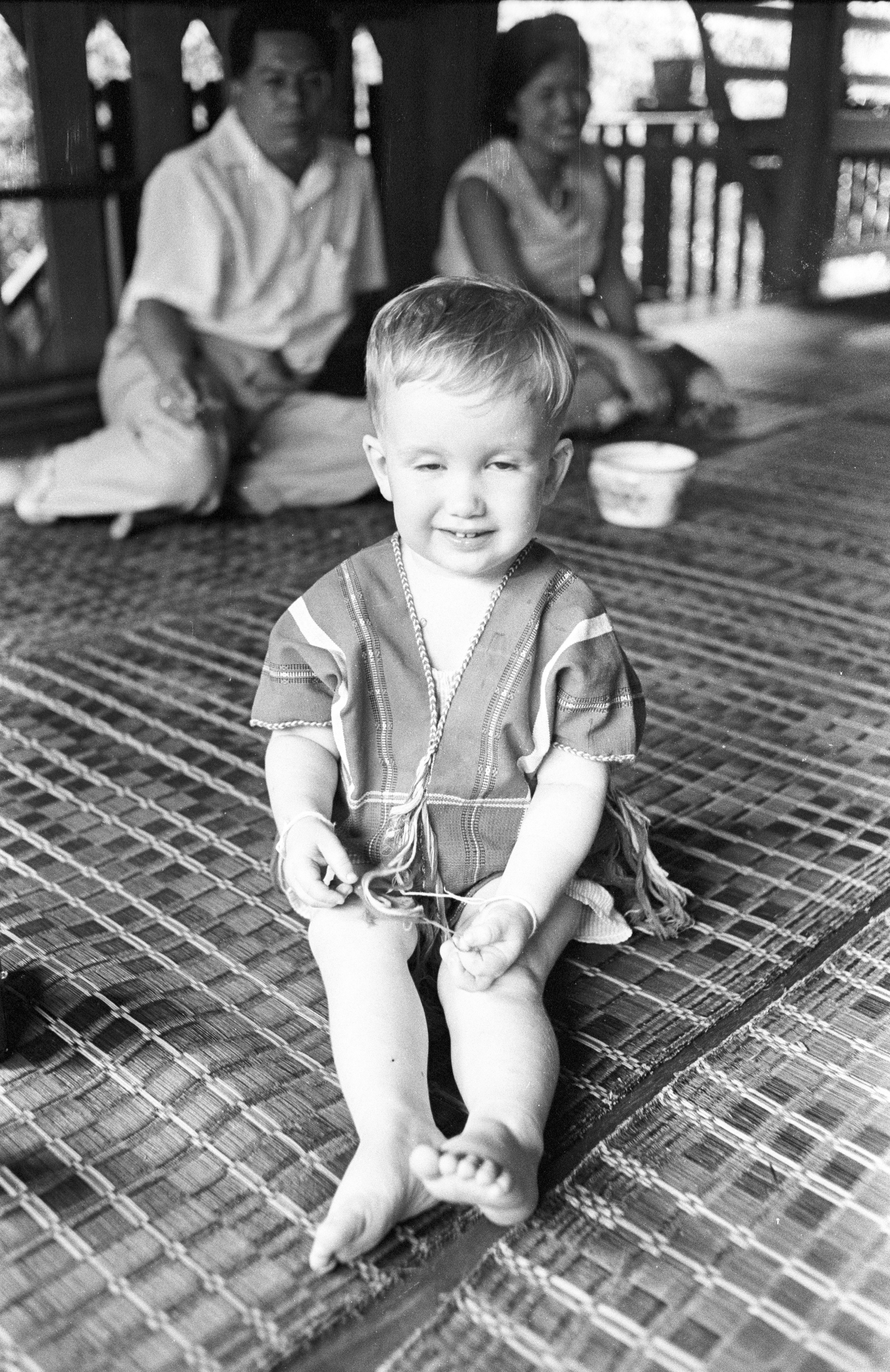 Liang phra for Nick Keyes's second birthday: the birthday boy, Amphoe Mae Sariang, Changwat Mae Hong Son, Thailand, July 1968