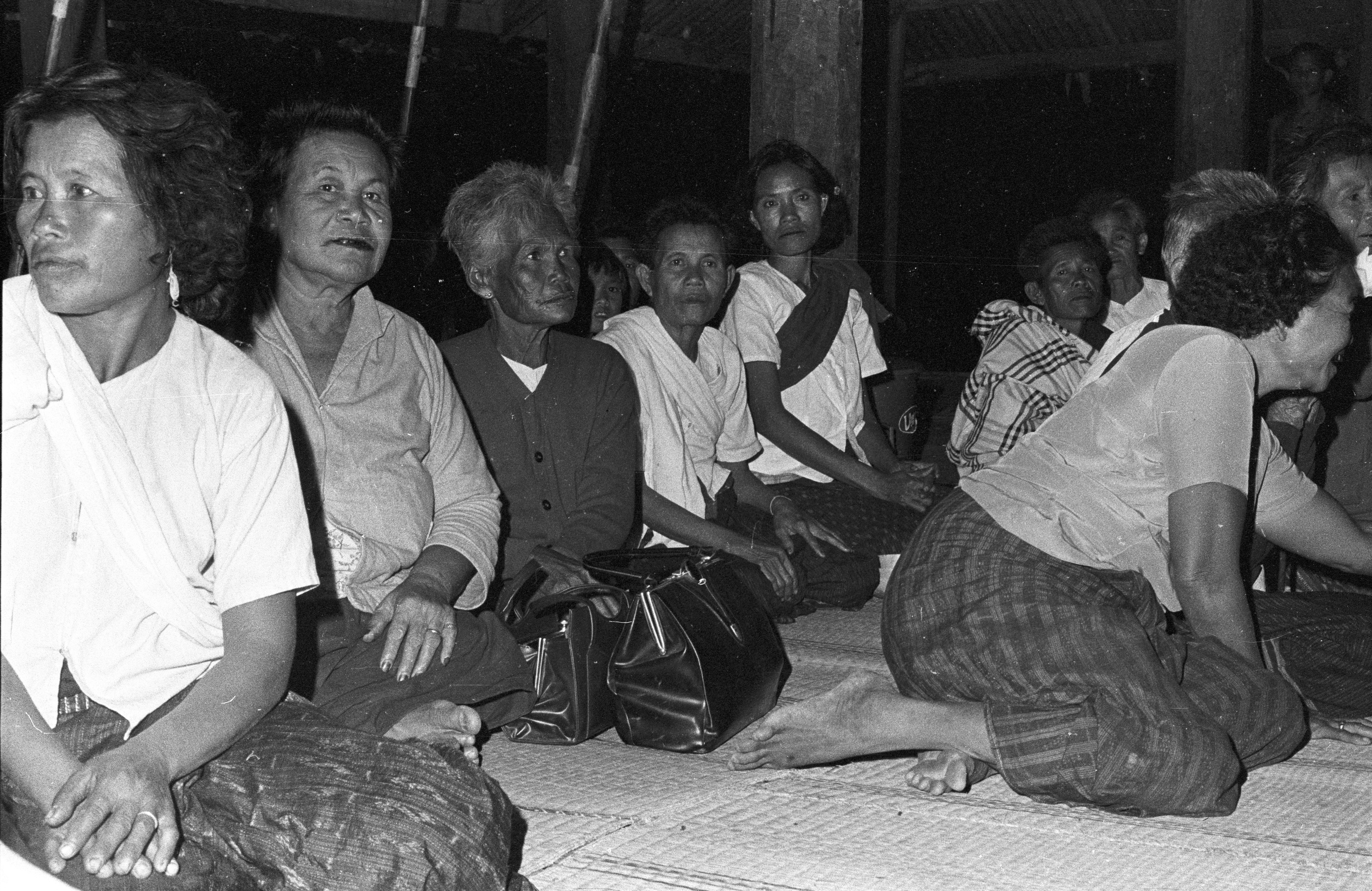 Old women at the wat for suatmon yen, 2 photos, Maha Sarakham Province, Thailand, November 1967