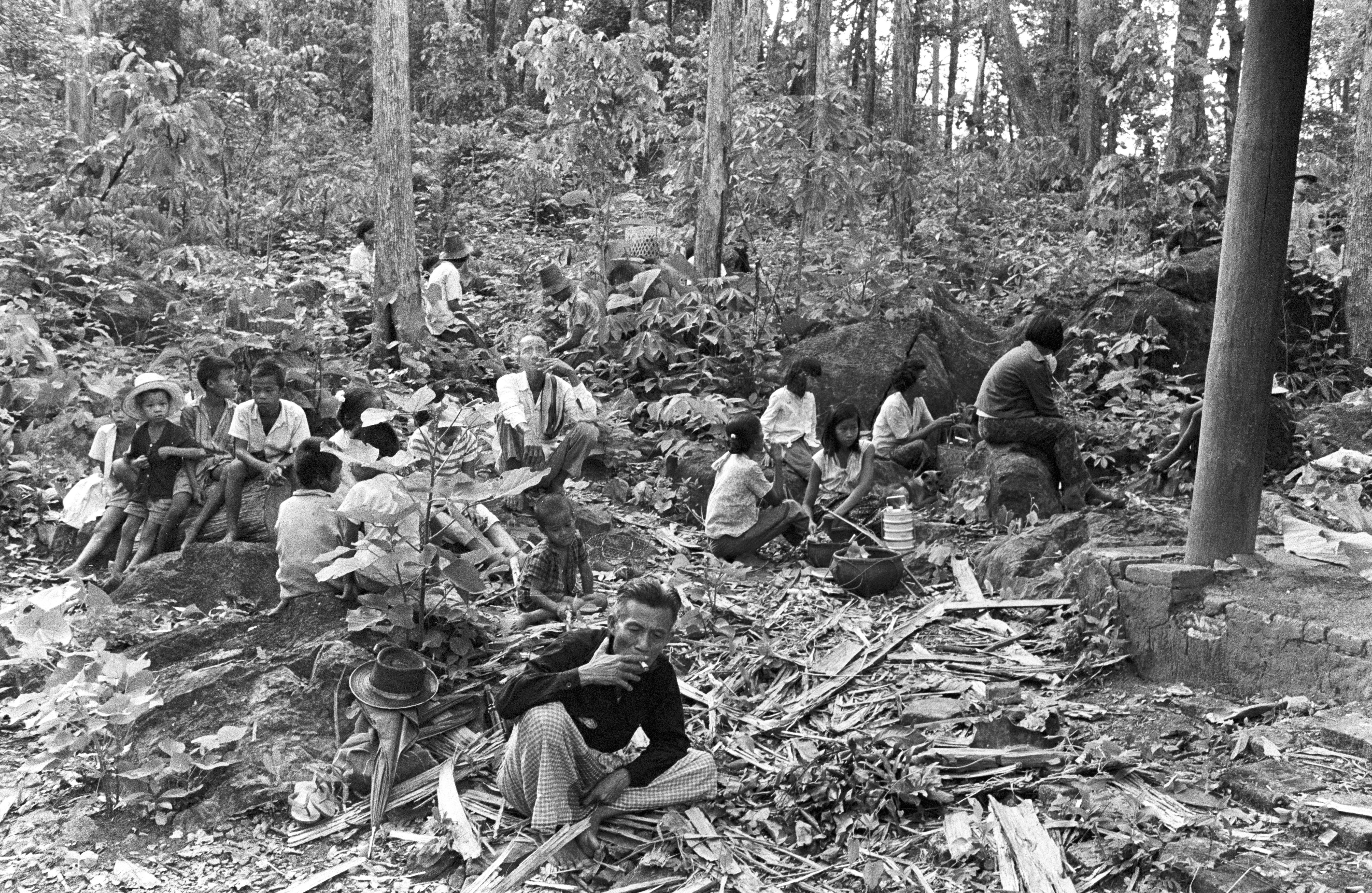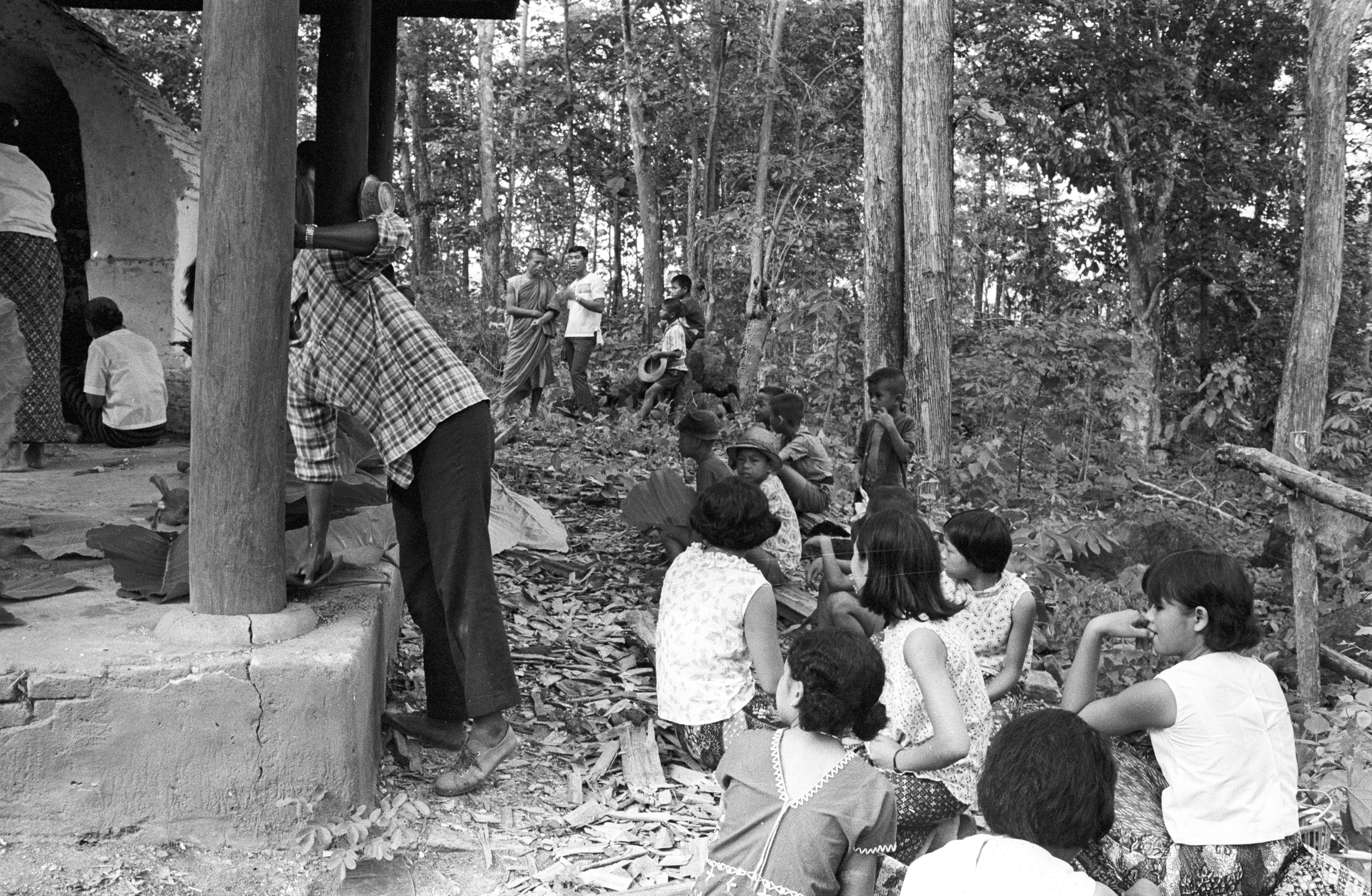 Bathing 'handprint of Buddha' (phraphutthahat, พระพุทธหัสต์) near B. Thung Phrāo, South of Mae Sariang: people who came for ritual, 3 photos, Amphoe Mae Sariang, Changwat Mae Hong Son, Thailand, May 1968