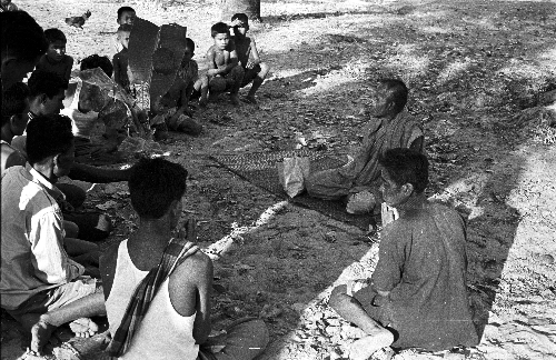 Presentation of the kan lôn (กันหลอน) for the Bun Phra Wēt (บุญพระเวส, ritual to chant the Vessantara Jātaka), photo 1, Changwat Maha Sarakham, Thailand, 1964