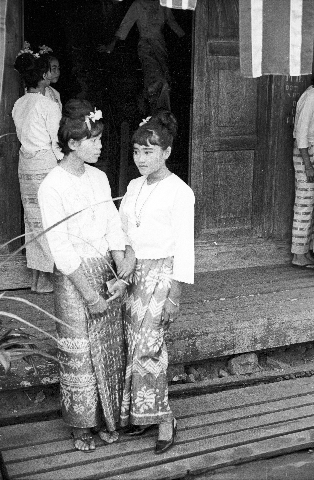 Girls in Shan dress, 2 photos, Amphoe Muang Mae Hong Son, Changwat Mae Hong Son, Thailand, January 1968