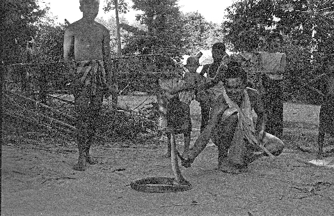 Village man with large snake, 2 photos, Ban Nong Tun, Amphoe Muang, Changwat Maha Sarakham, Thailand, October 1963