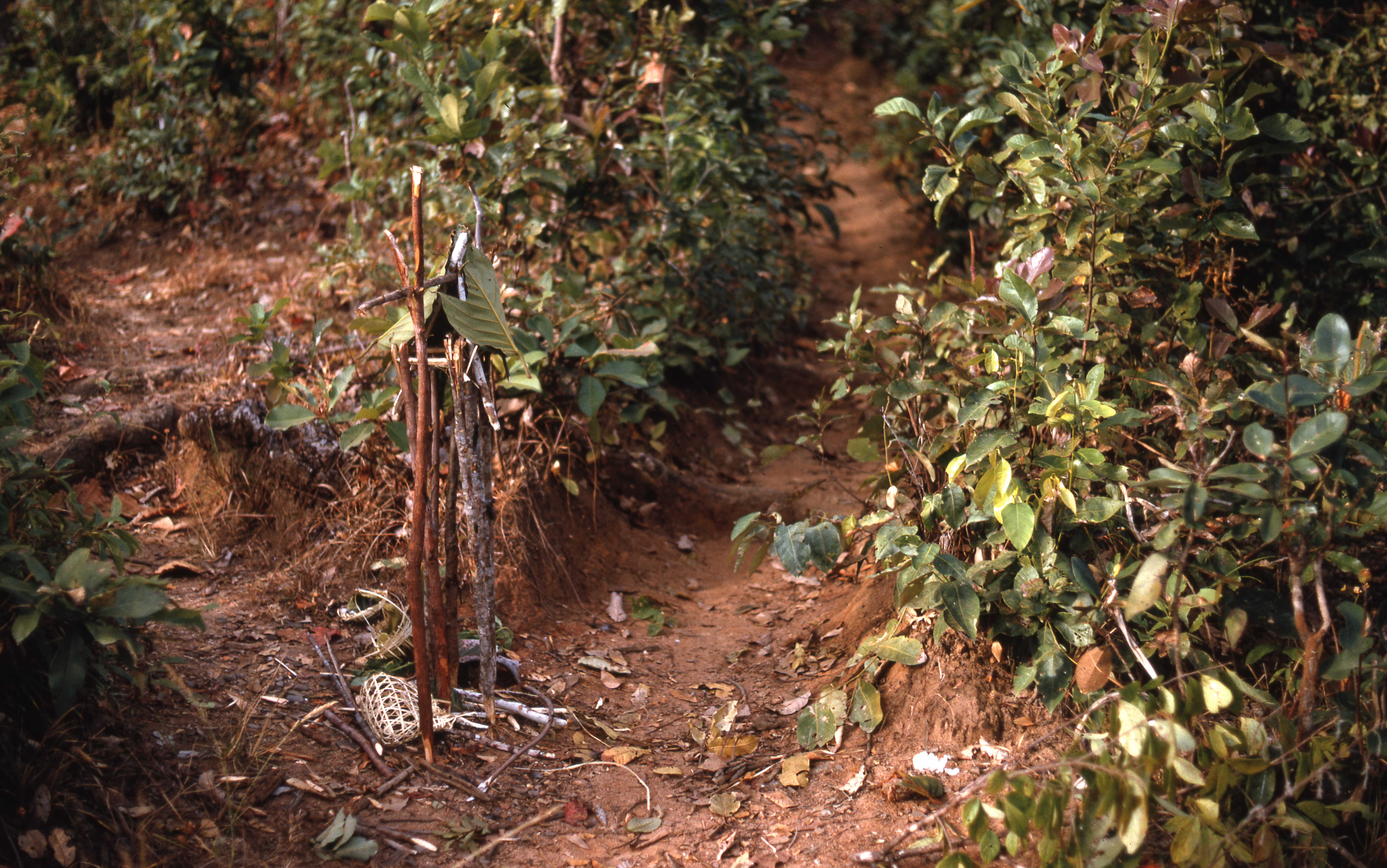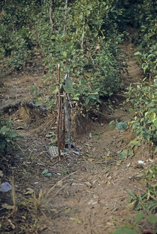 Spirit shrine on trail from Bān Phāpae back to Mae Sariang, 2 photos, Thambon Pa Pae, Amphoe Mae Sariang, Changwat Mae Hong Son, Thailand, January 1968