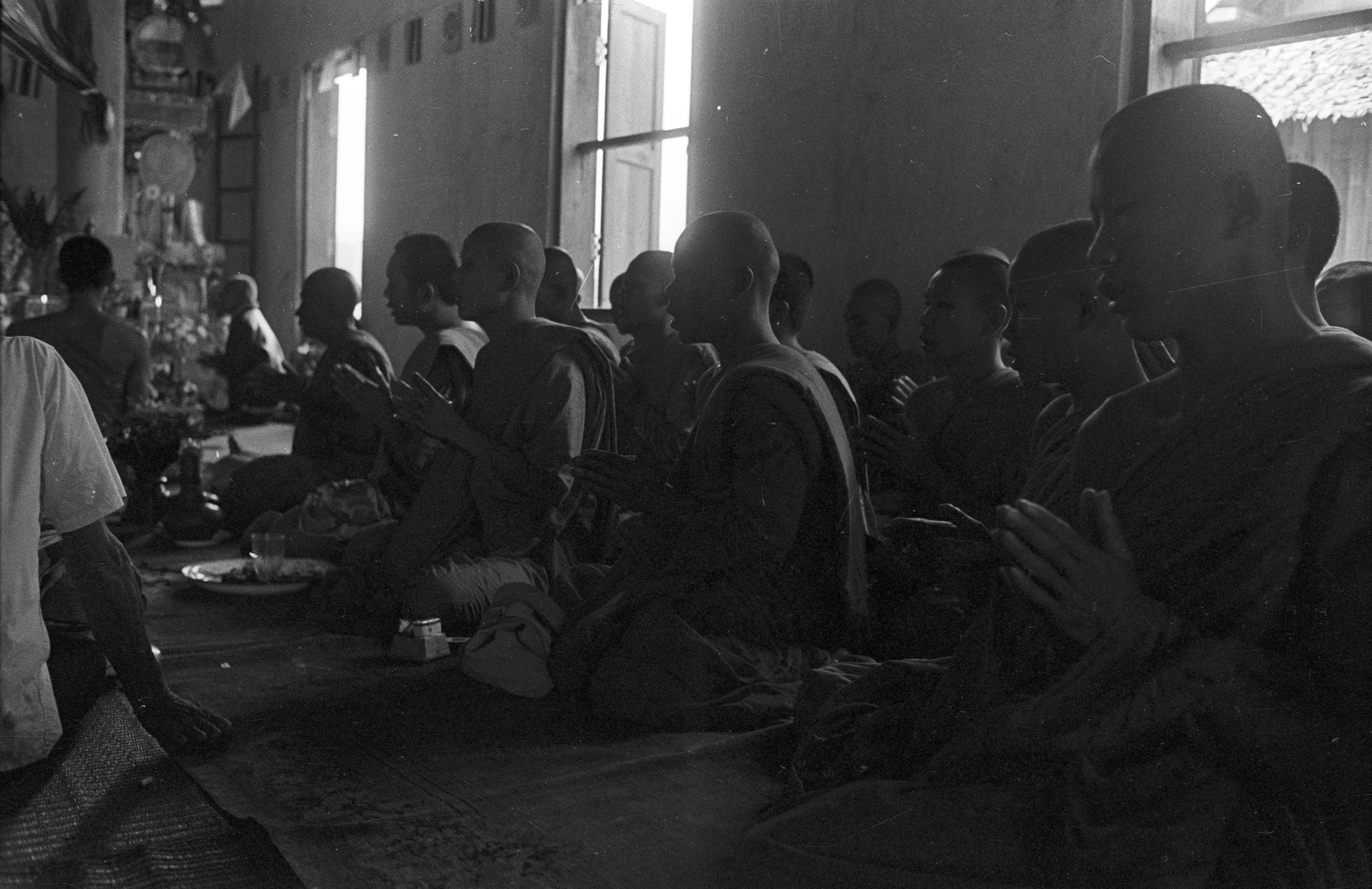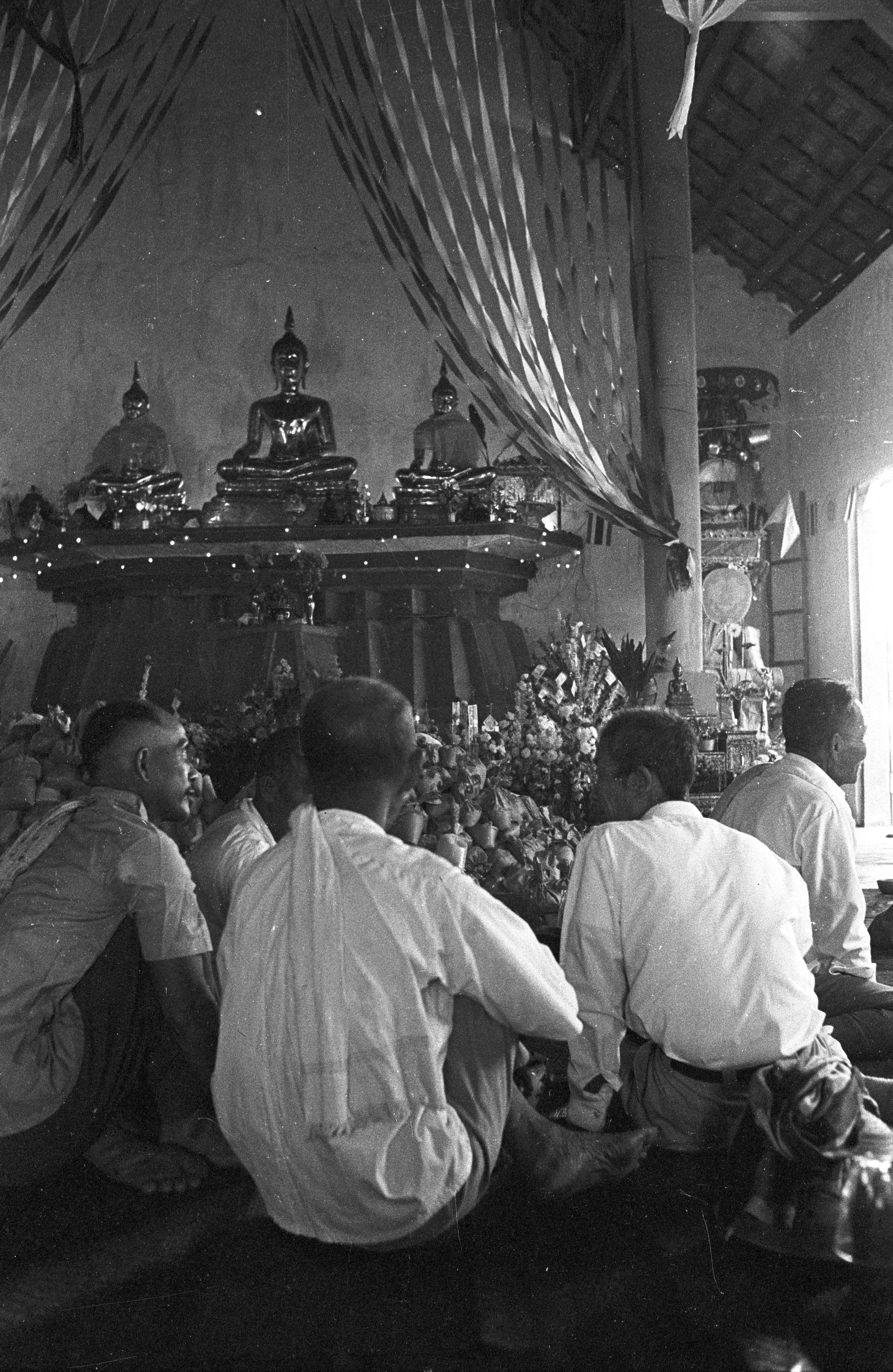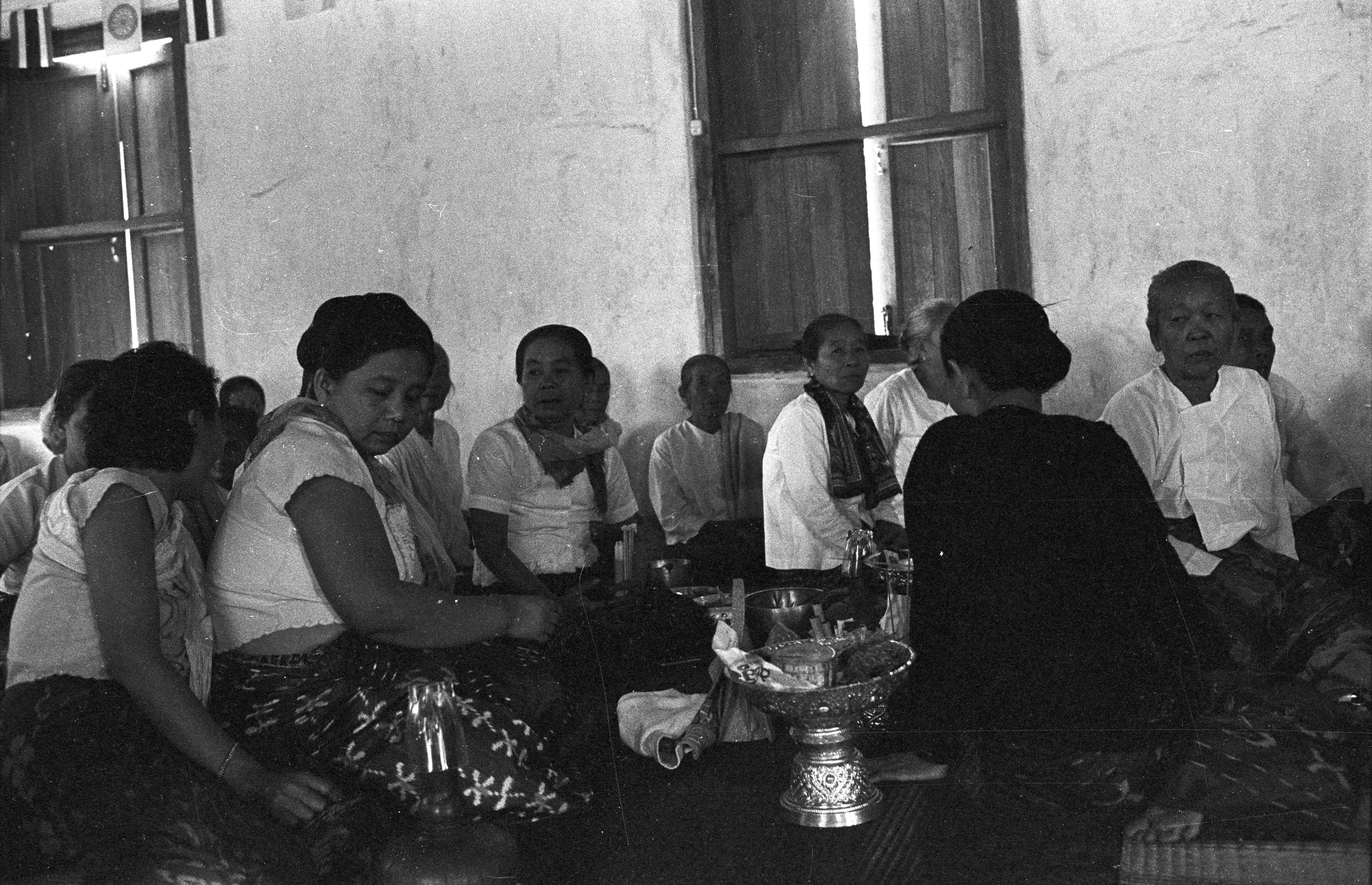 Dedication of new bōt at Wat Chaiyalāp: laity, 6 photos; new bōt, 1 photo, Amphoe Mae Sariang, Changwat Mae Hong Son, Thailand, January 1968
