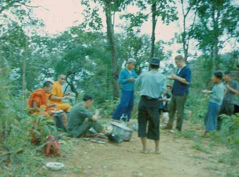Trip to Salween to find old palm leaf manuscripts (bailān) -- lunch on trail, Ban Khun Mae Top, Thambon Ban Kat, Amphoe Mae Sariang, Changwat Mae Hong Son, Thailand, June 1968