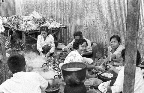 Cooking preparations, 2 photos, Maha Sarakham Province, Thailand, November 1967