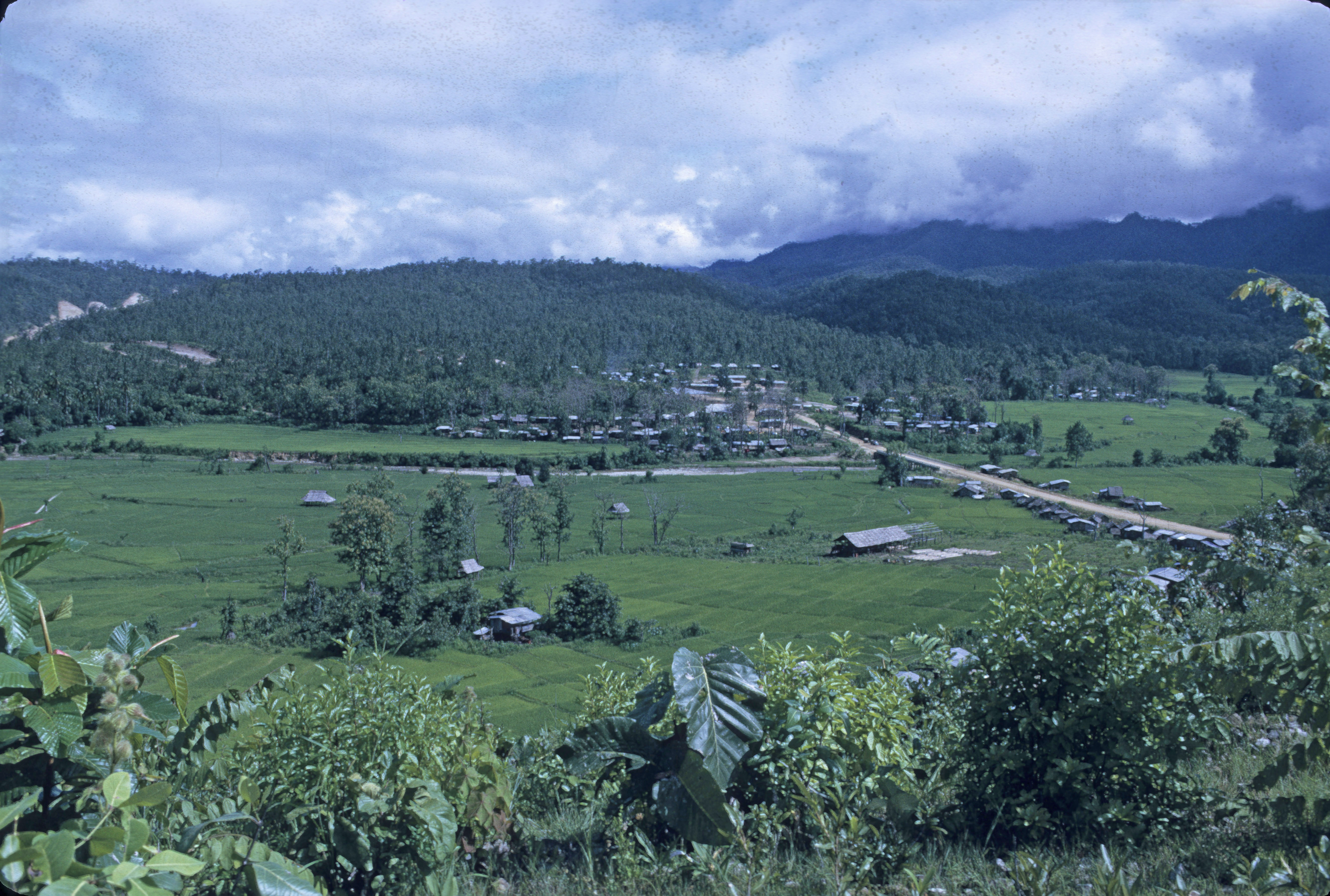 Scene of valley, 4 photos (one with Cit in picture), Ban Mae La Noi, Amphoe Mae Sariang, Changwat Mae Hong Son, Thailand, October 1967