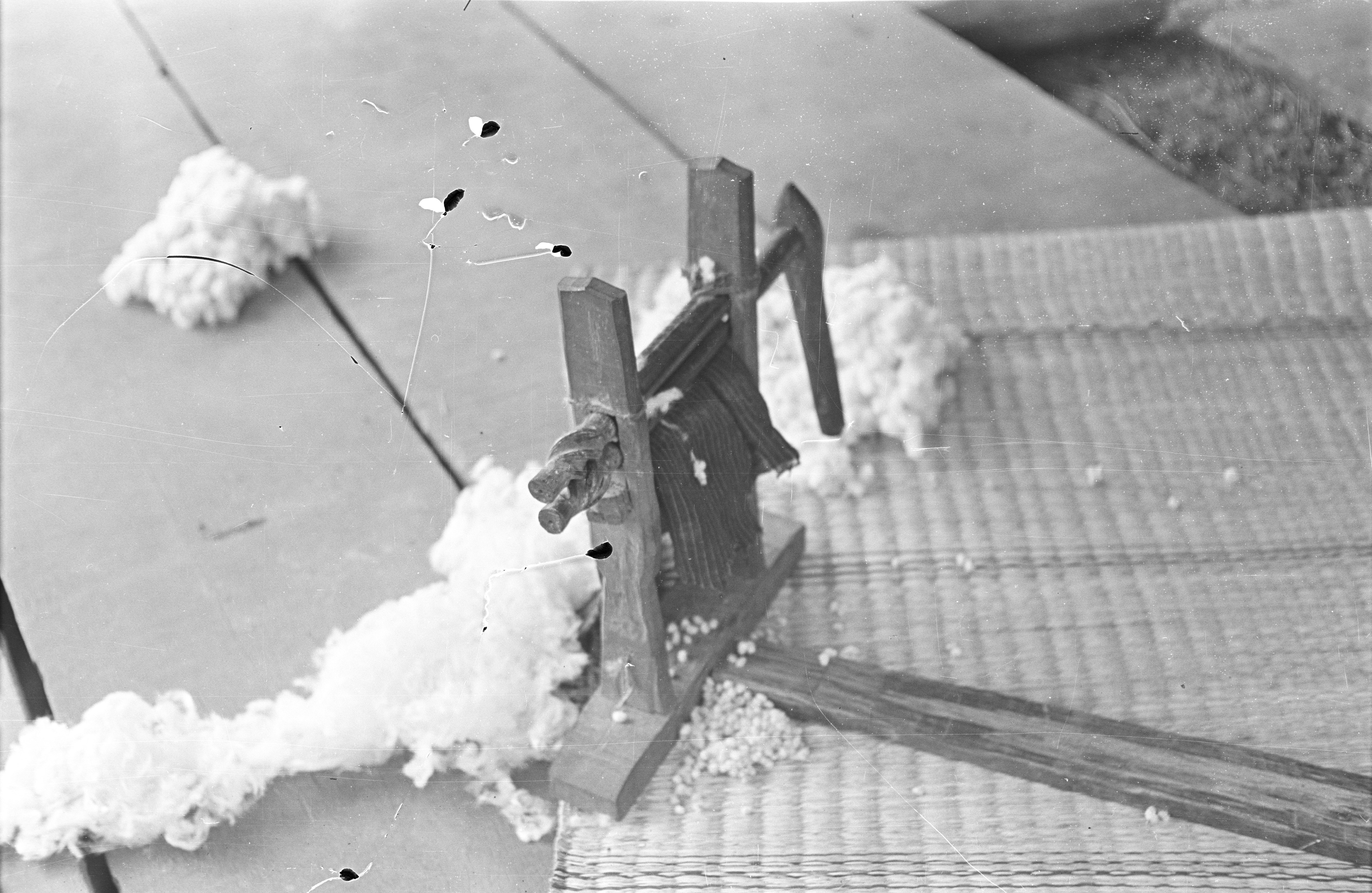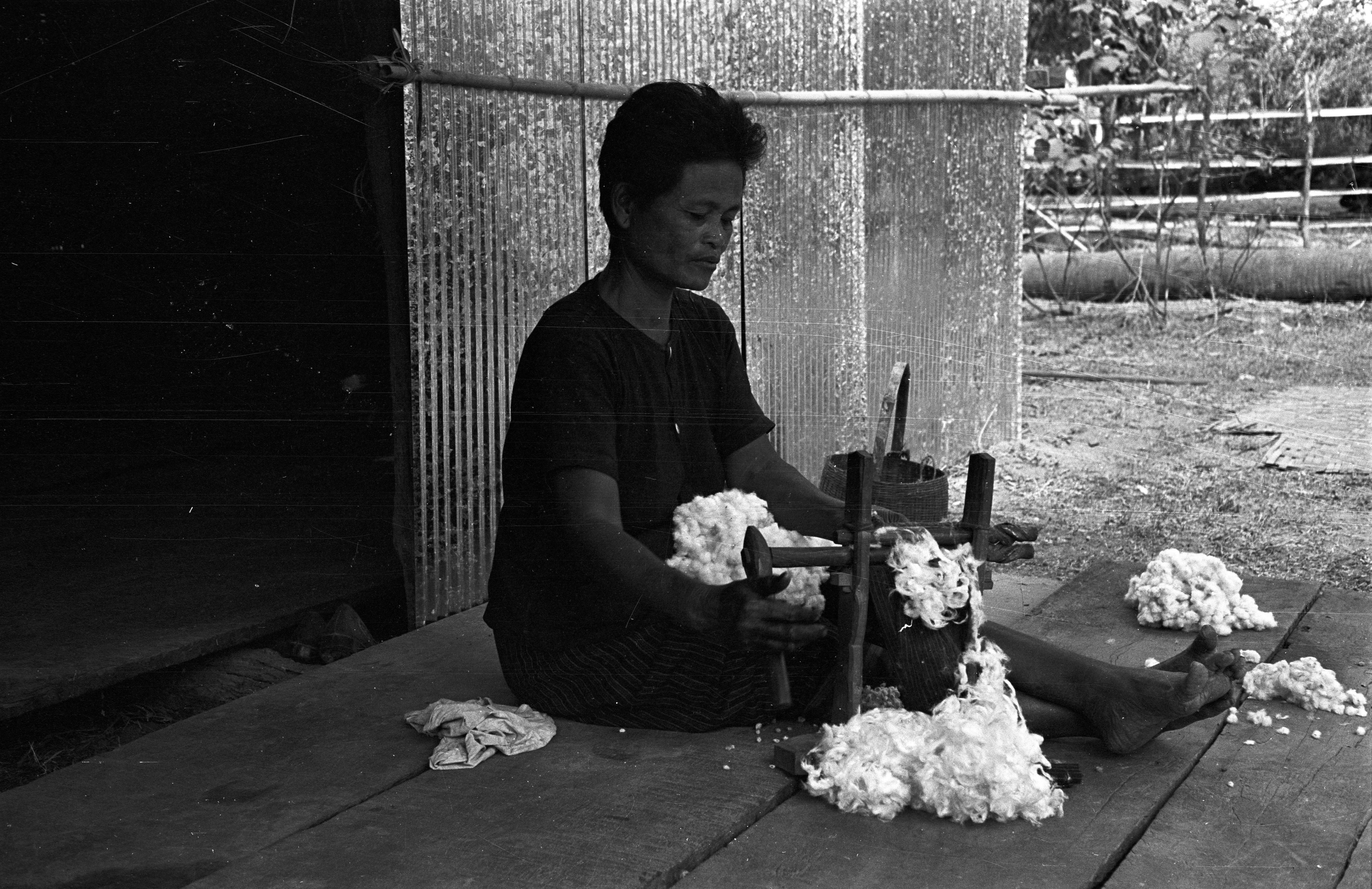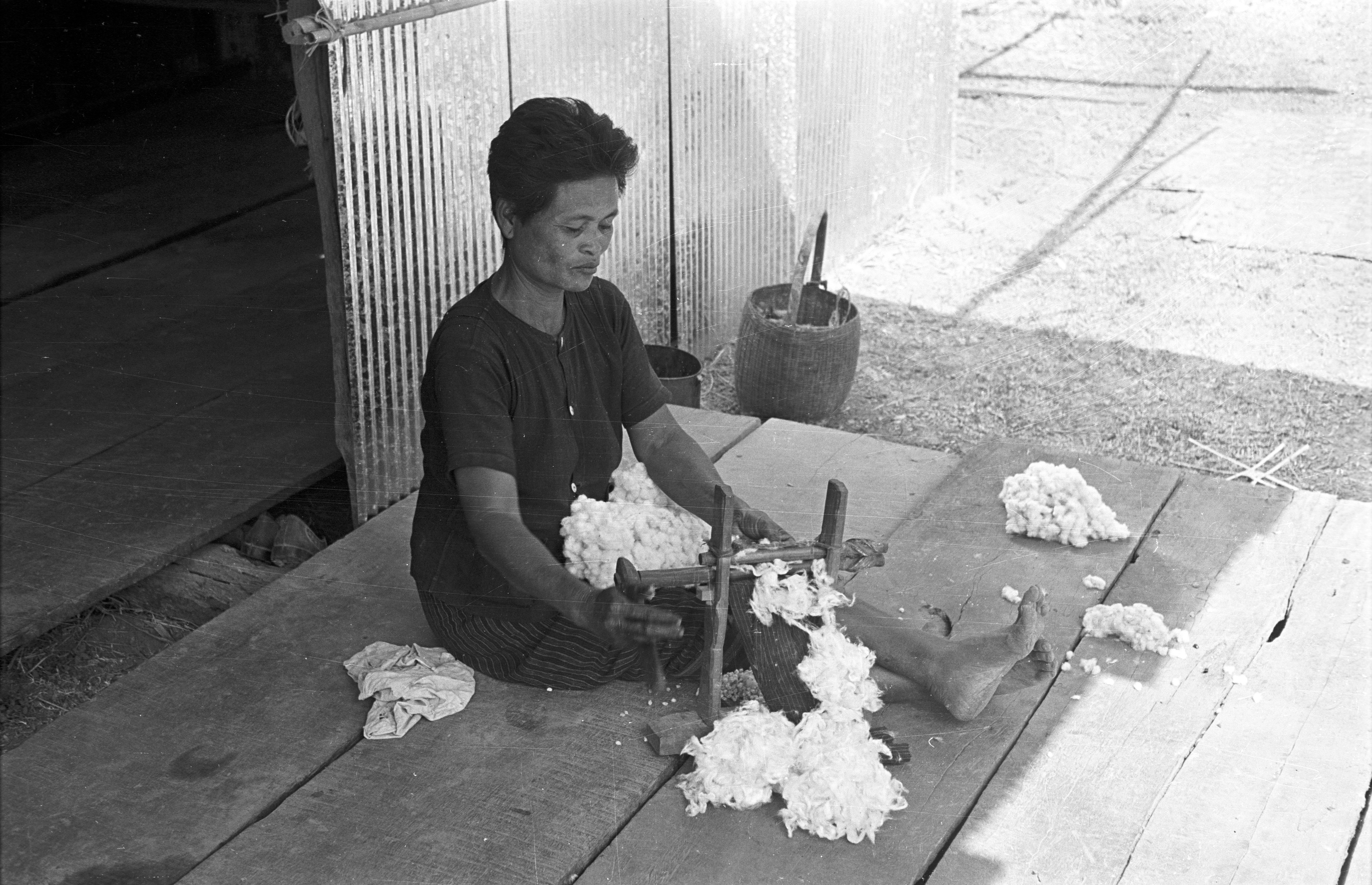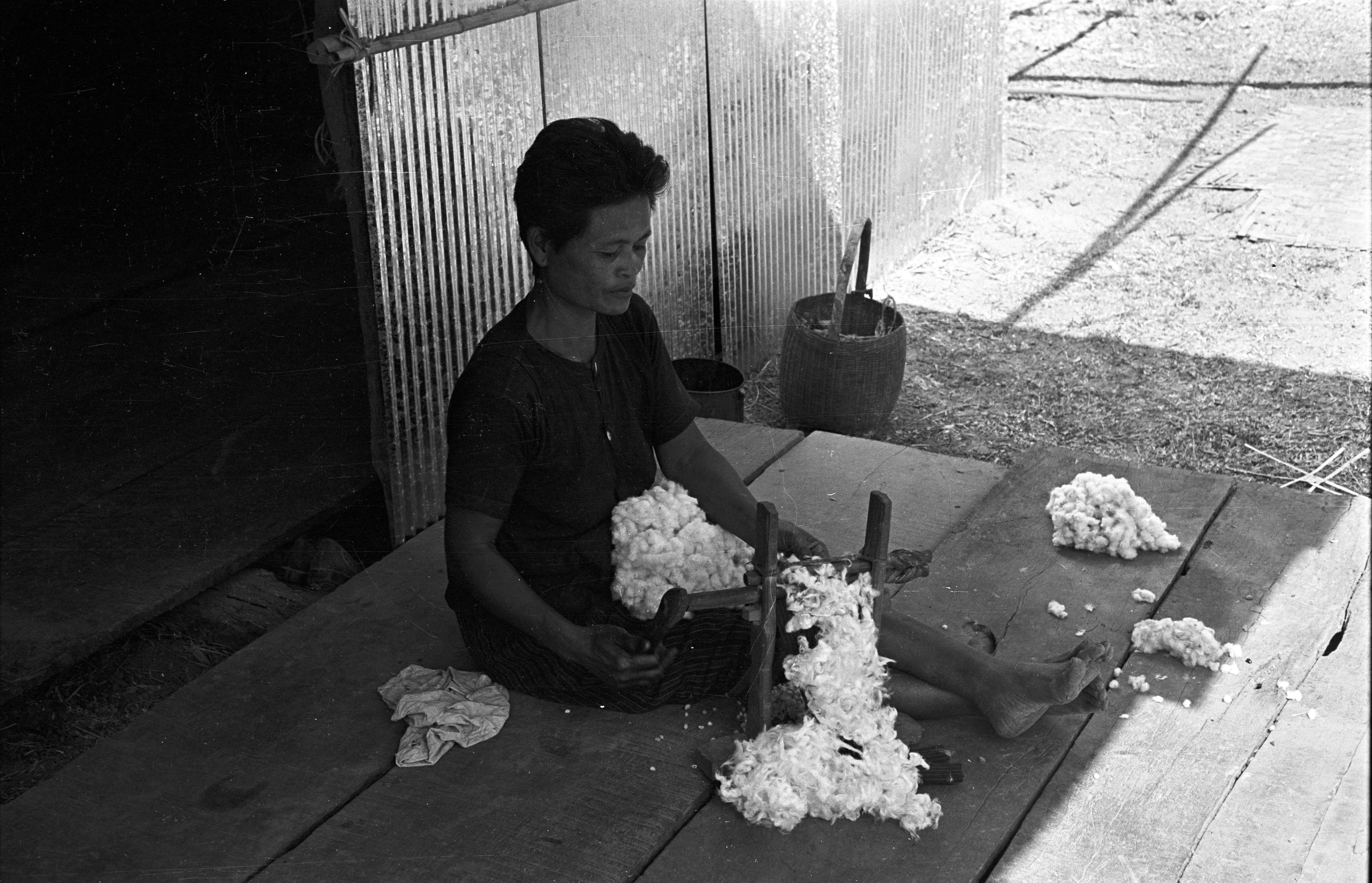 Village woman ginning cotton (io fāi), 5 photos, Changwat Maha Sarakham, Thailand, February 1964