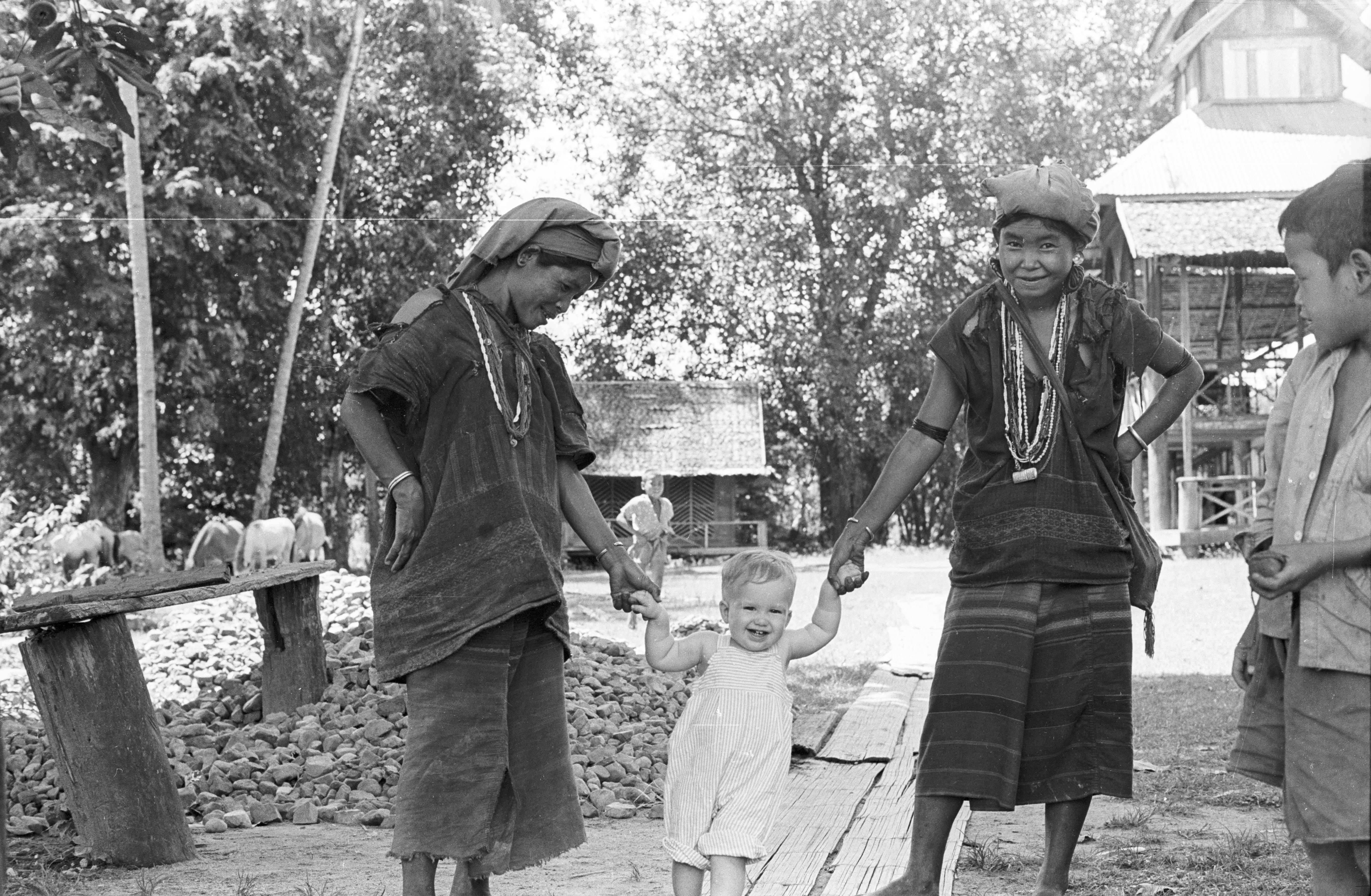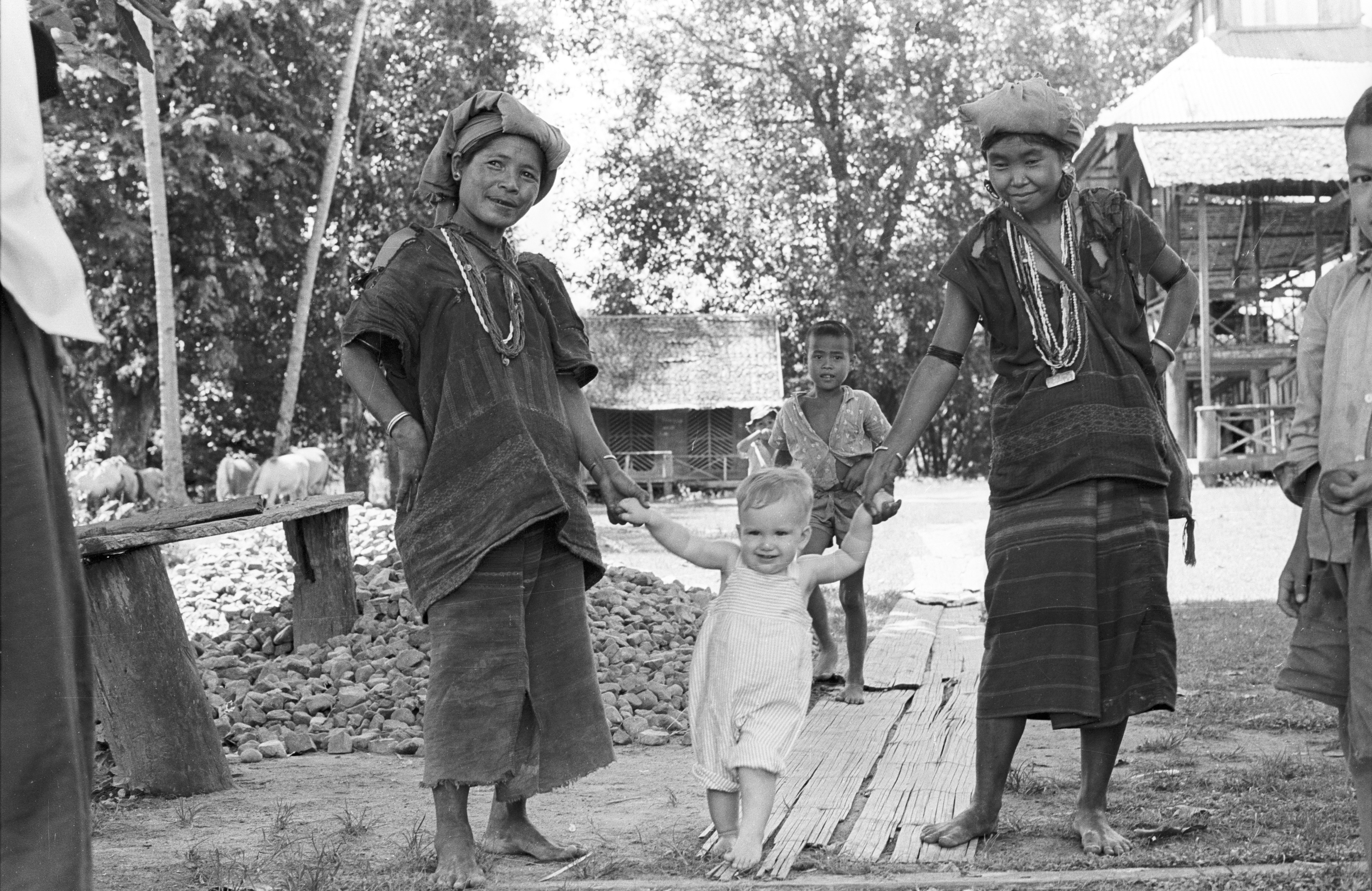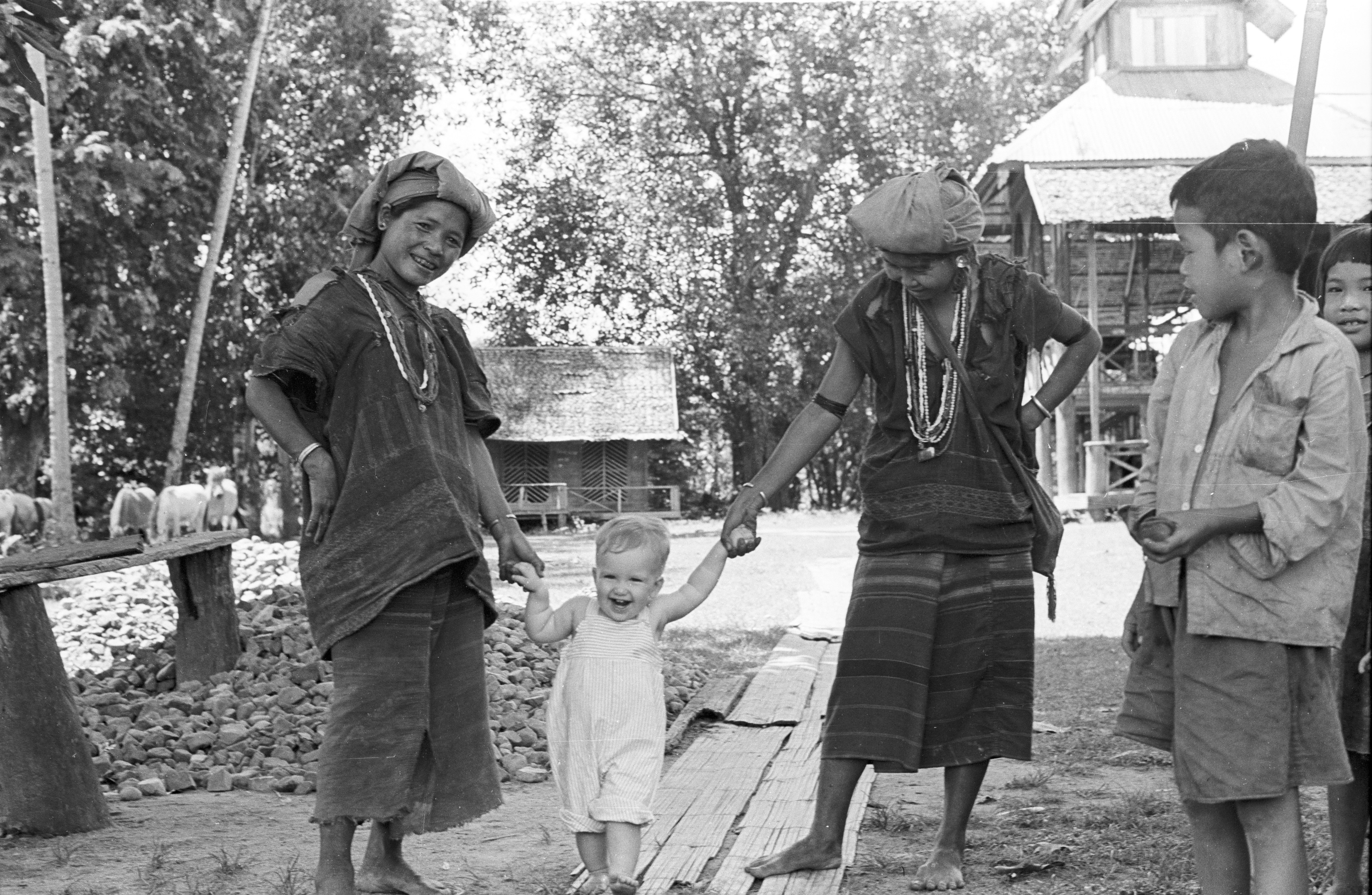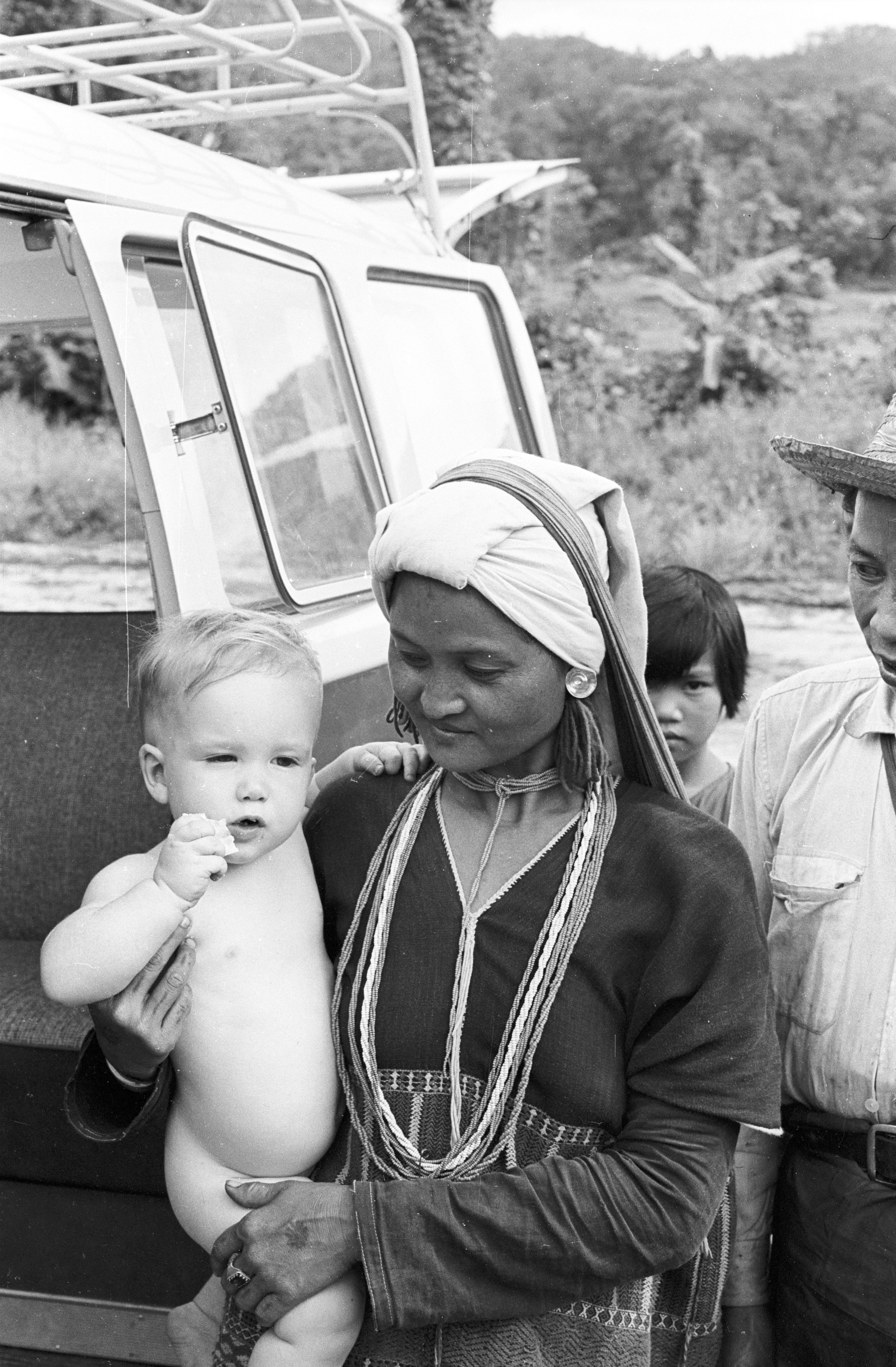 Nick between two Karen women at Māē Lā Nôi, 4 photos, Mae Hong Son Province, Thailand, October 1967
