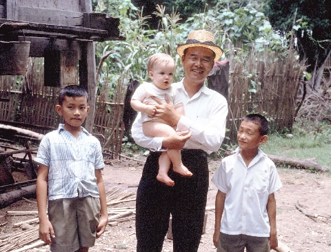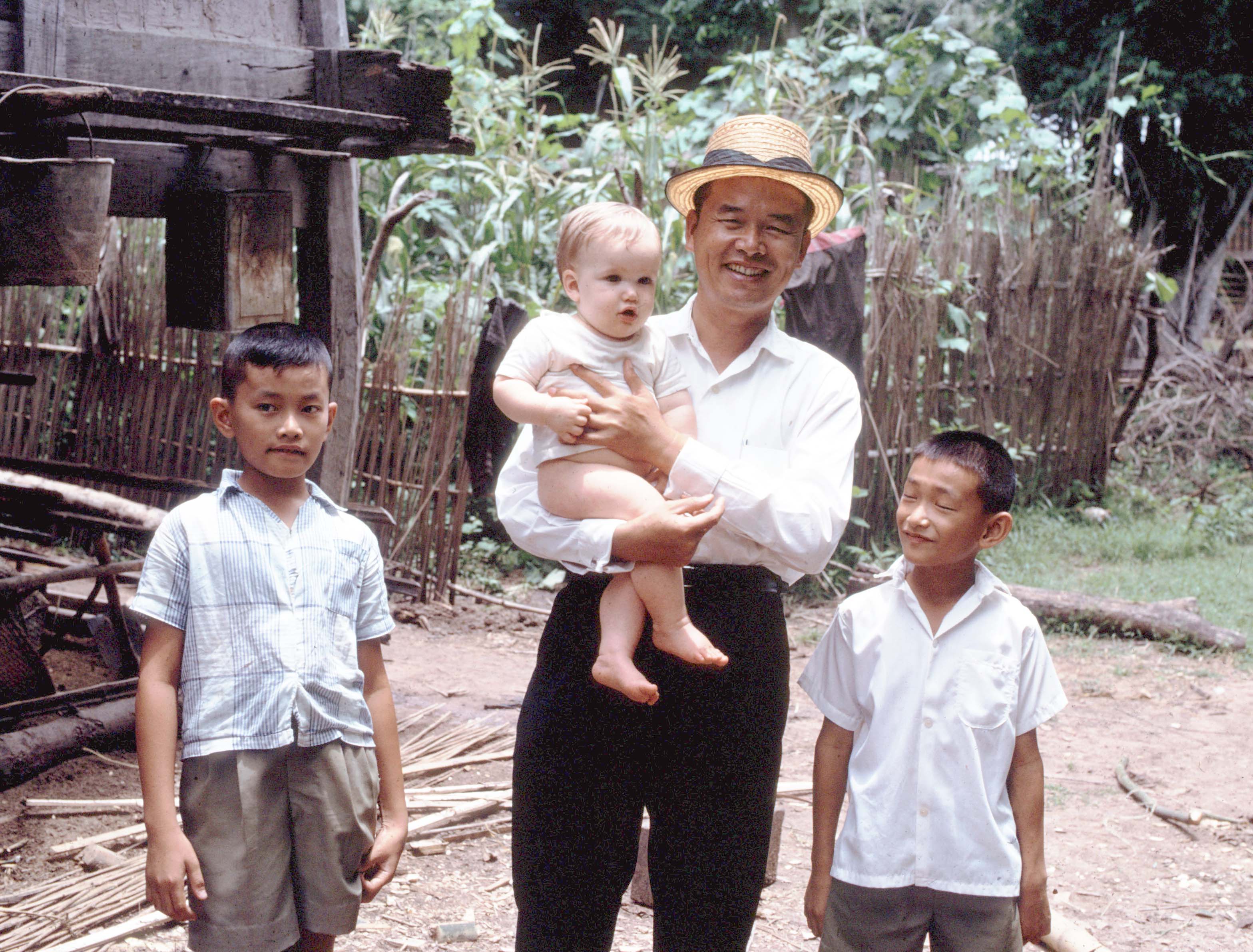 Man, two sons, and Nick, Ban Nong Tun, Amphoe Muang, Changwat Maha Sarakham, Thailand, July 1967