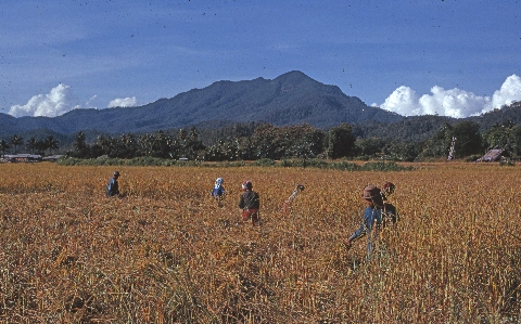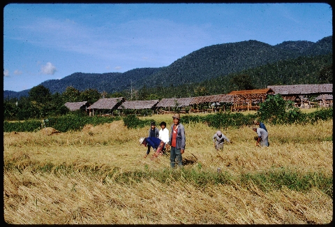 Threshing scene late in the day, 2 photos, Amphoe Mae Sariang, Changwat Mae Hong Son, Thailand, November 1967
