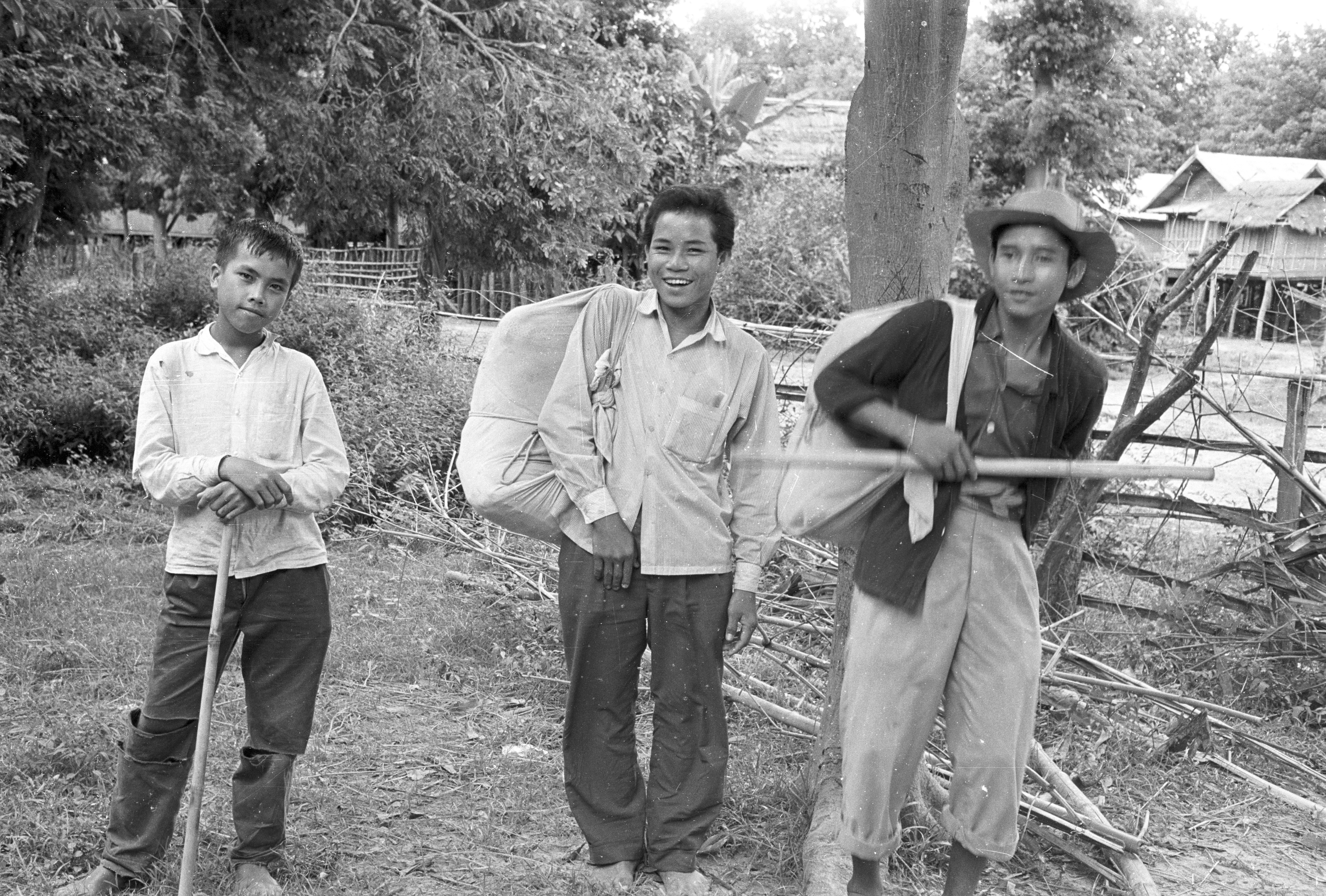 Traveling cloth pedlars, Ban Nong Tun, Amphoe Muang, Changwat Maha Sarakham, Thailand, September 1963