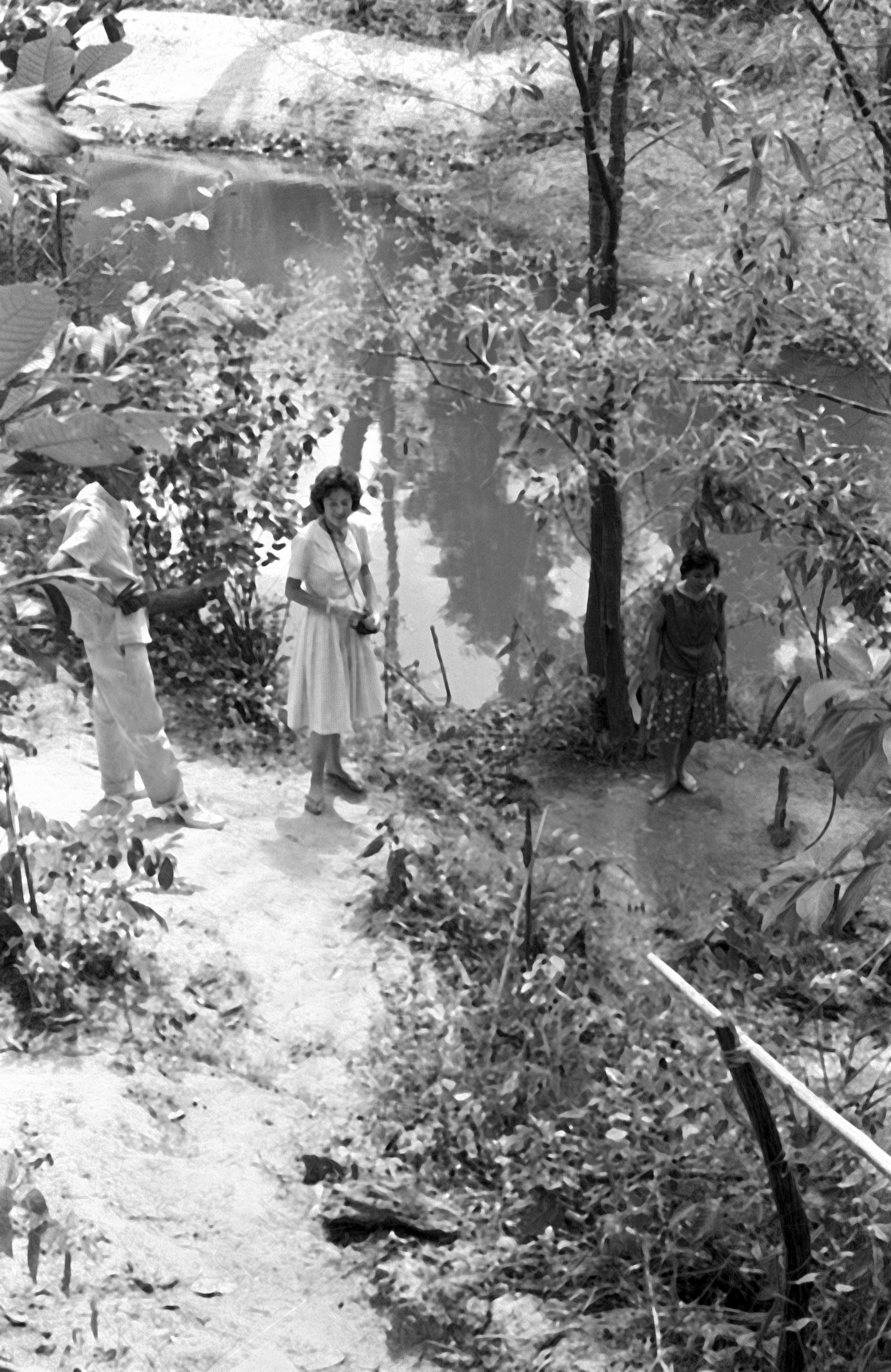 Tom Kirsch and Jane Keyes on edge of pond, Ban Nong Sung, Changwat Mukdahan, Thailand, November 1963