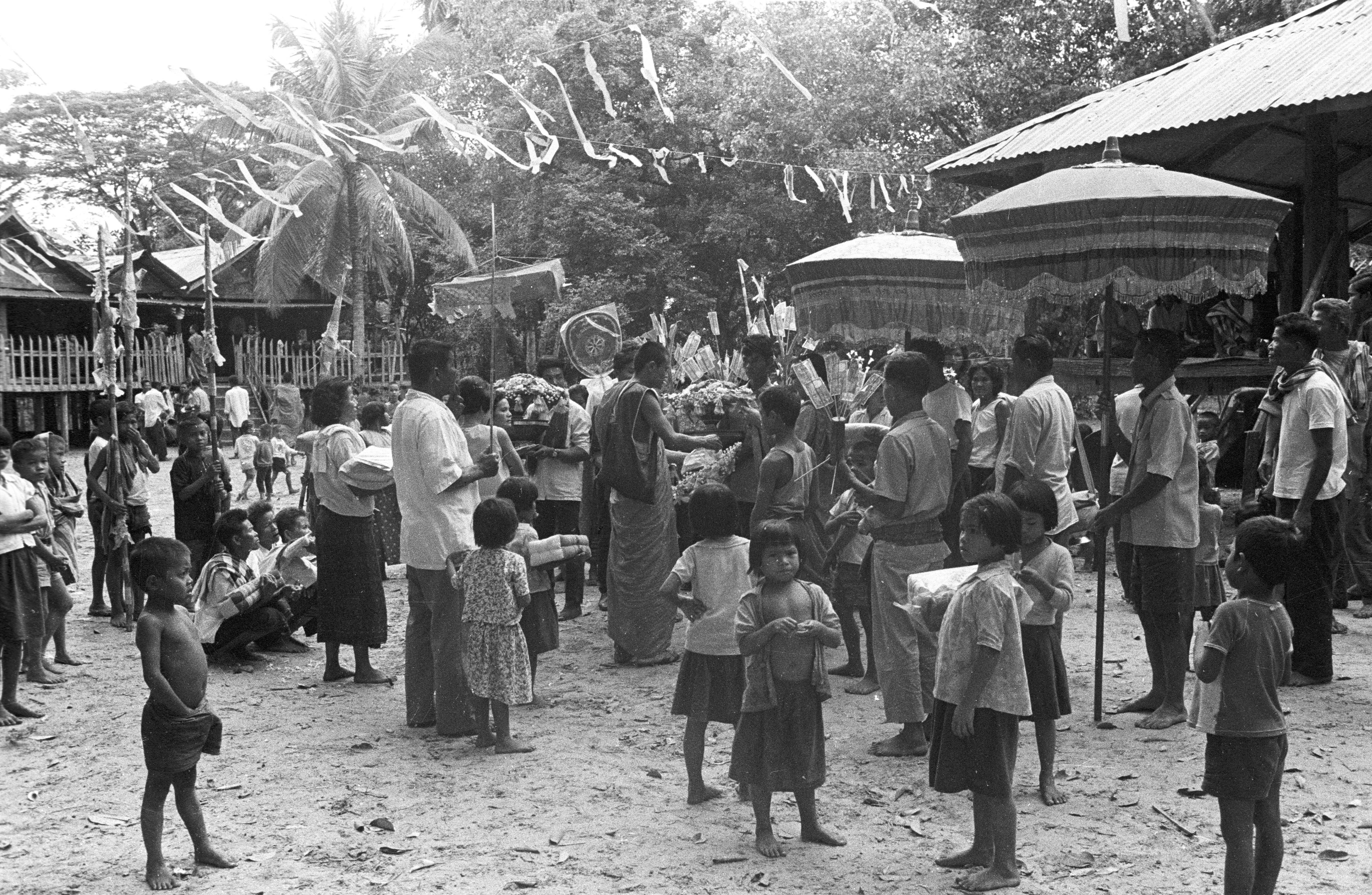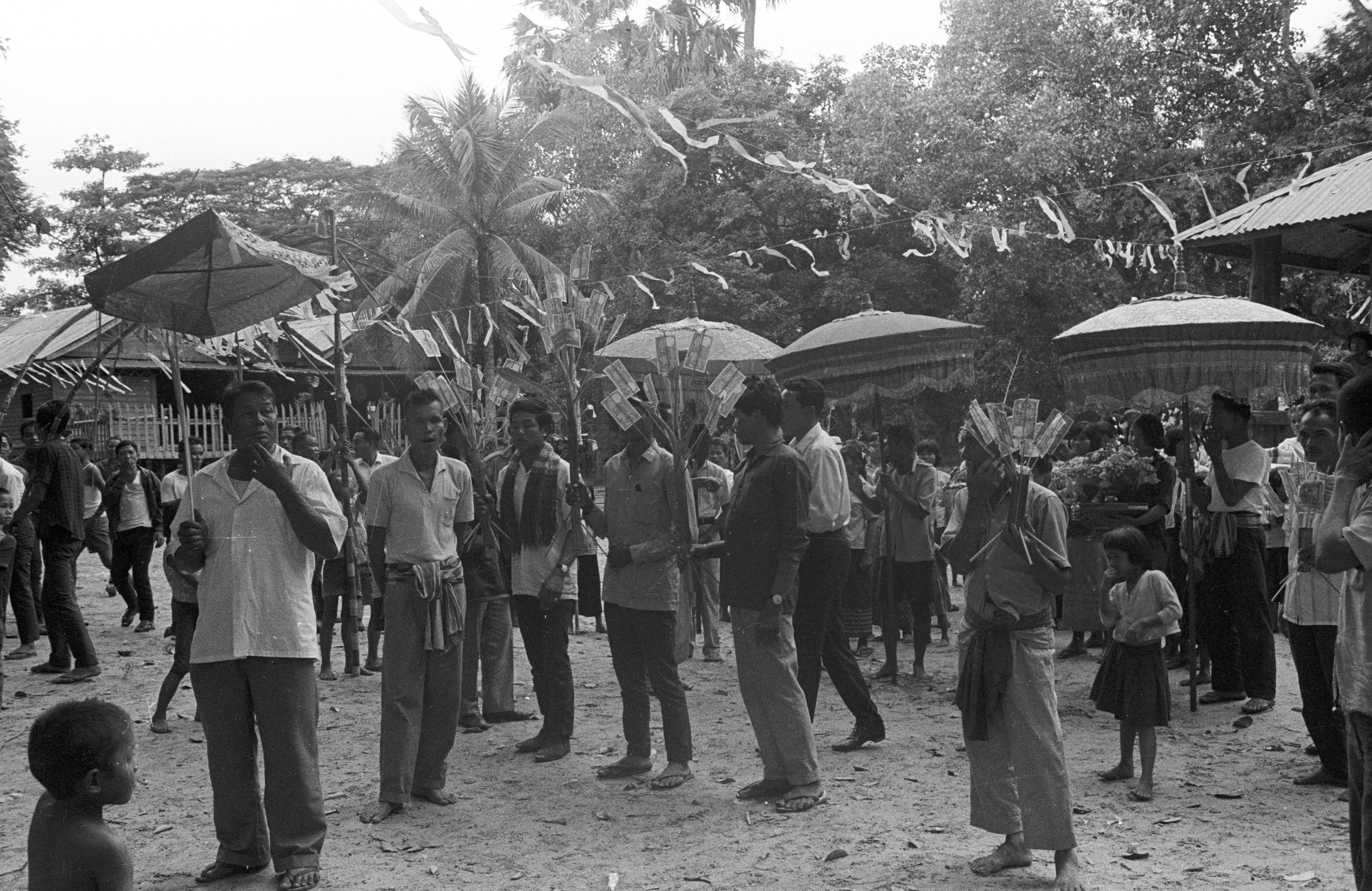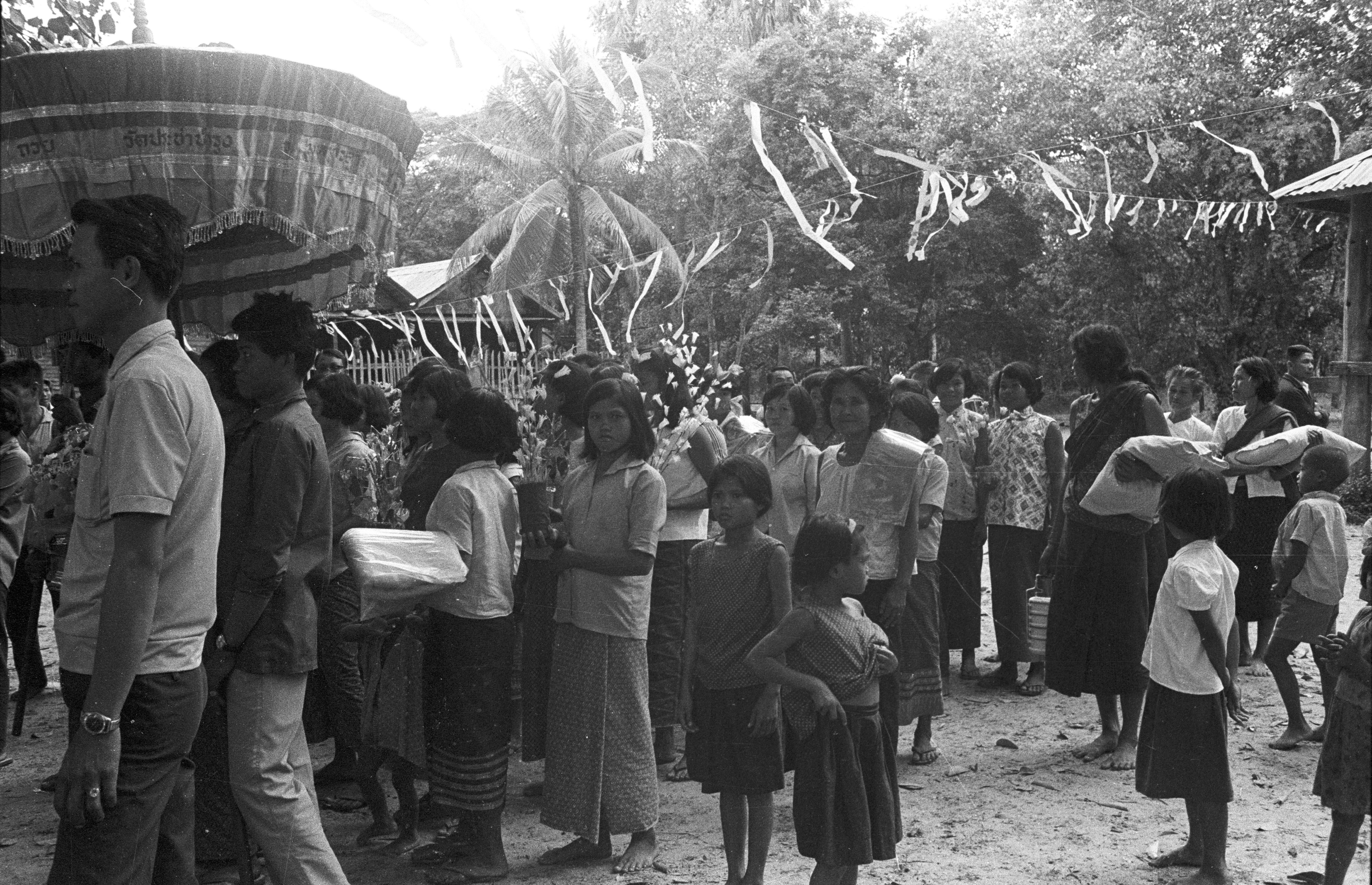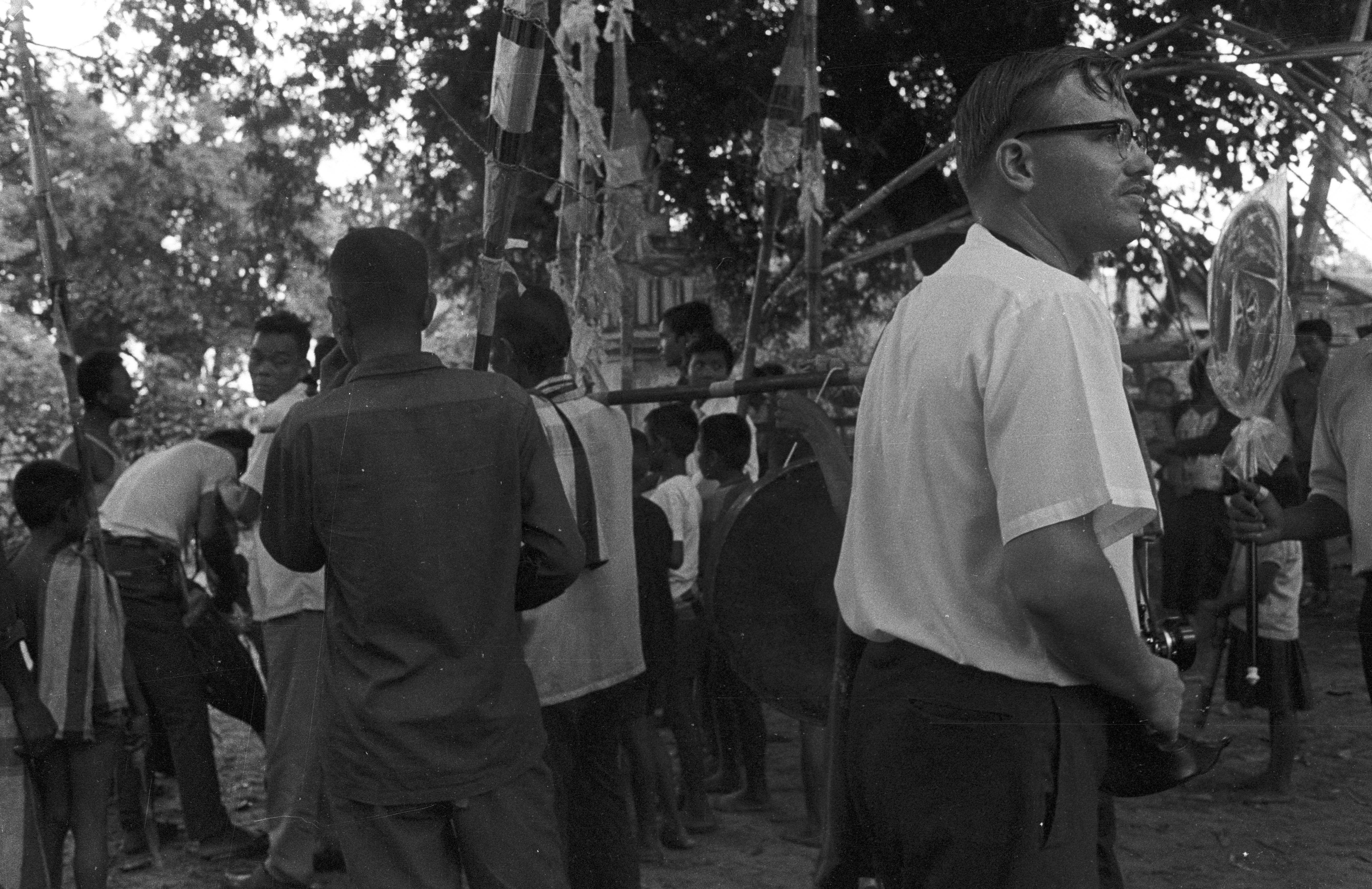 Procession getting underway, 7 photos - 2 with Charles F. Keyes, Maha Sarakham Province, Thailand, November 1967