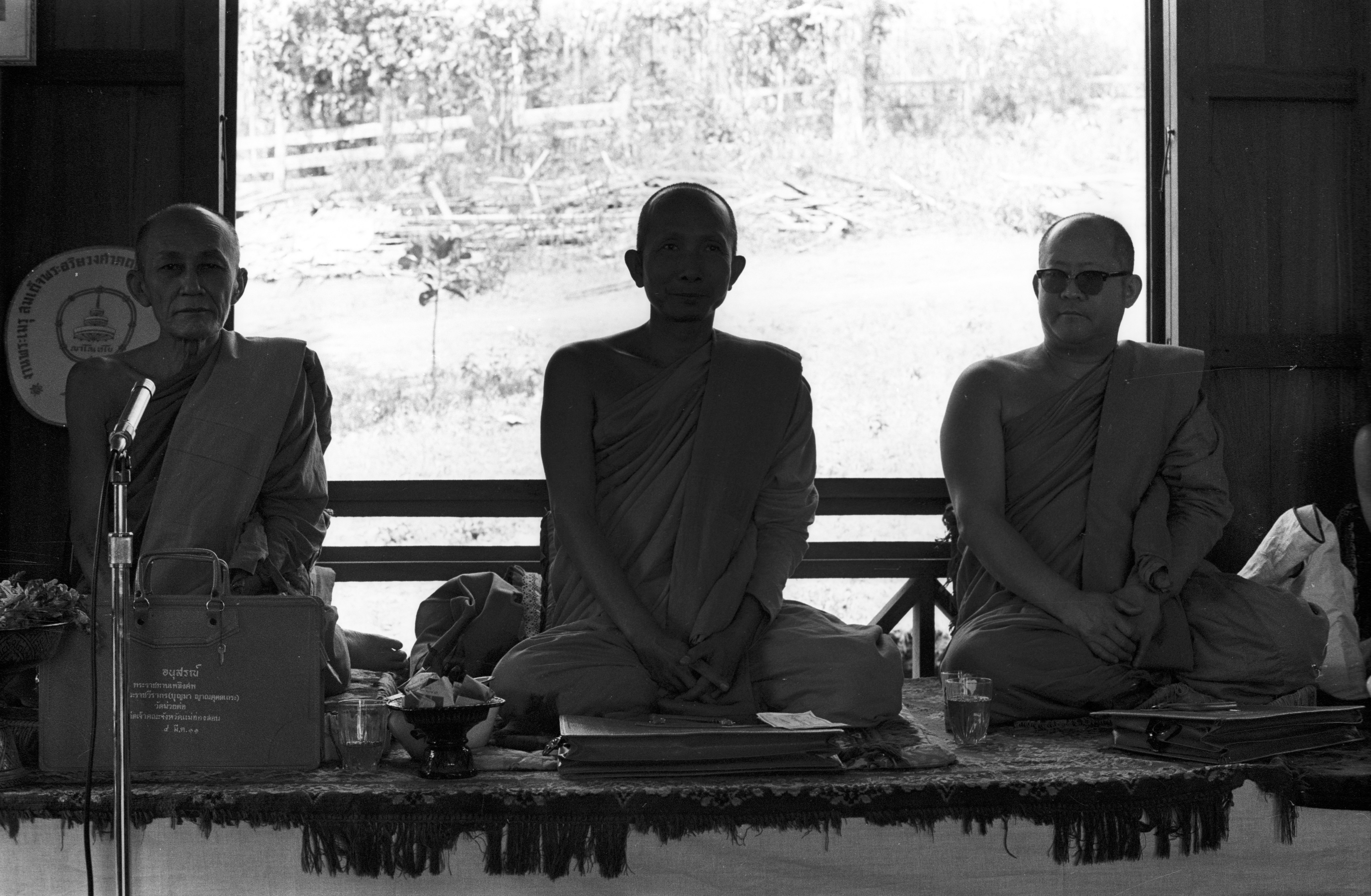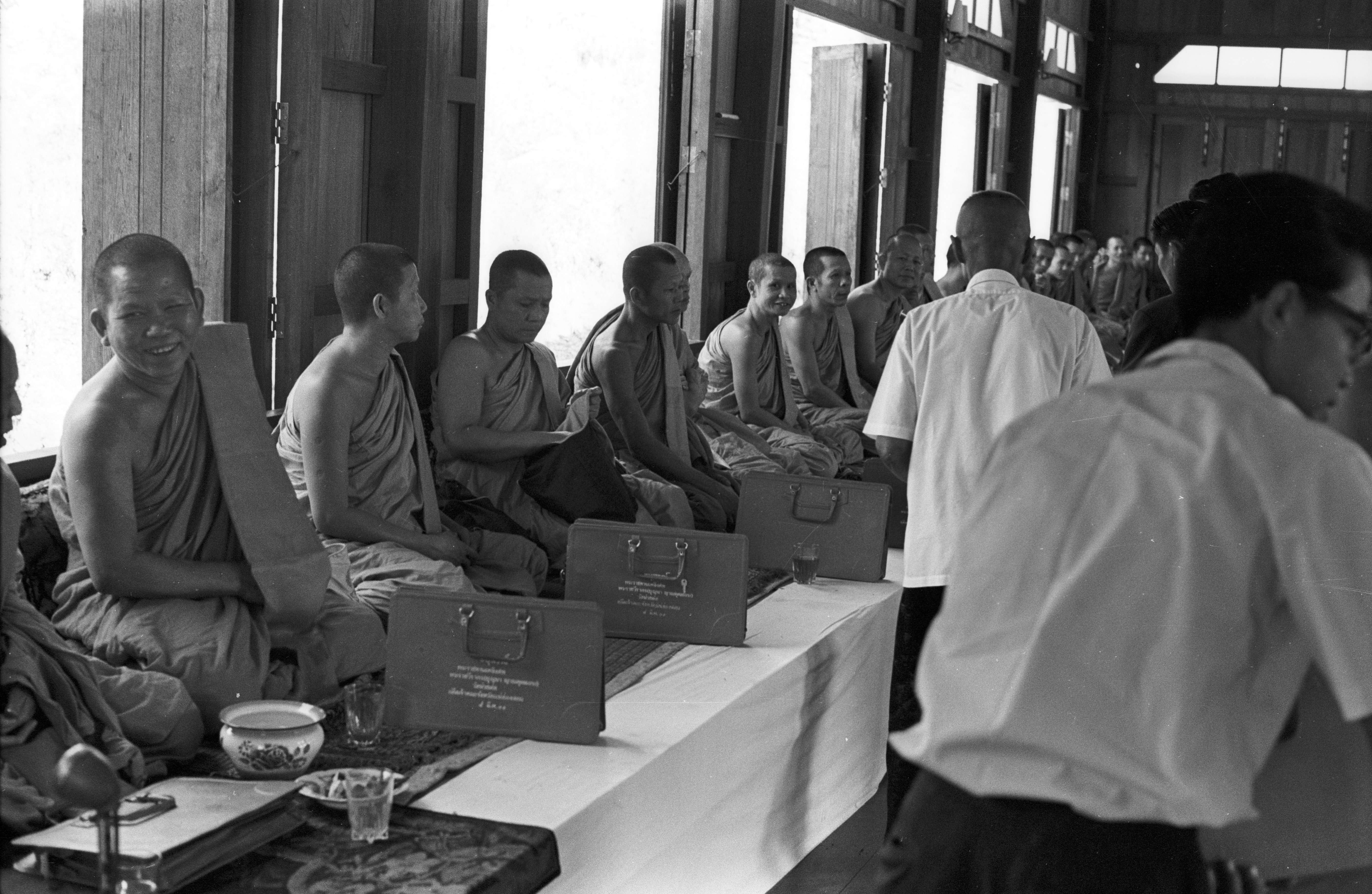 Monks at main wat in Mae Hong Son who have come for cremation of late provincial abbot, 6 photos, Amphoe Muang Mae Hong Son, Changwat Mae Hong Son, Thailand, March 1968