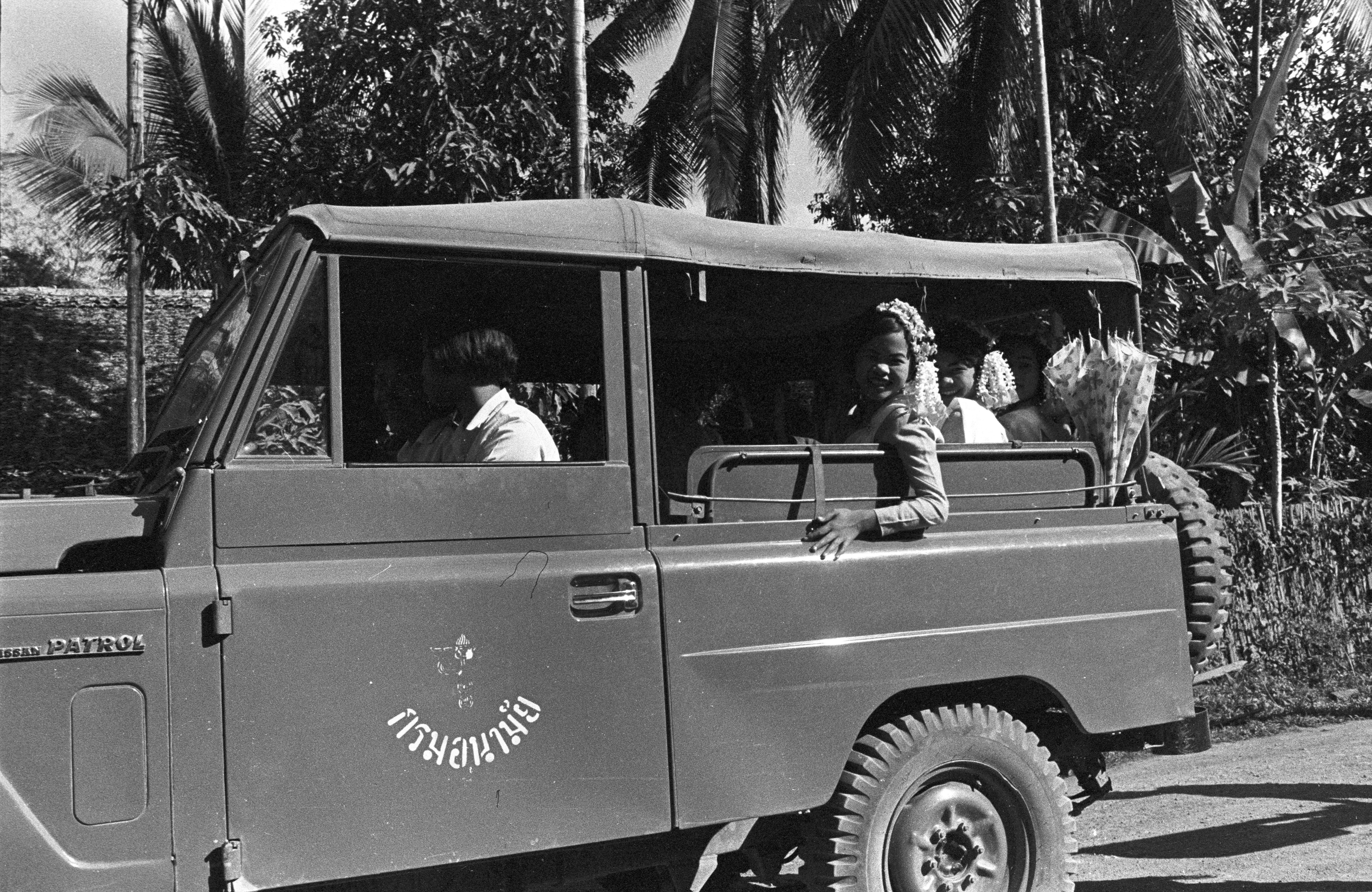 Dedication of new bōt at Wat Chaiyalap: procession carrying Buddha image, 5 photos, Amphoe Mae Sariang, Changwat Mae Hong Son, Thailand, January 1968