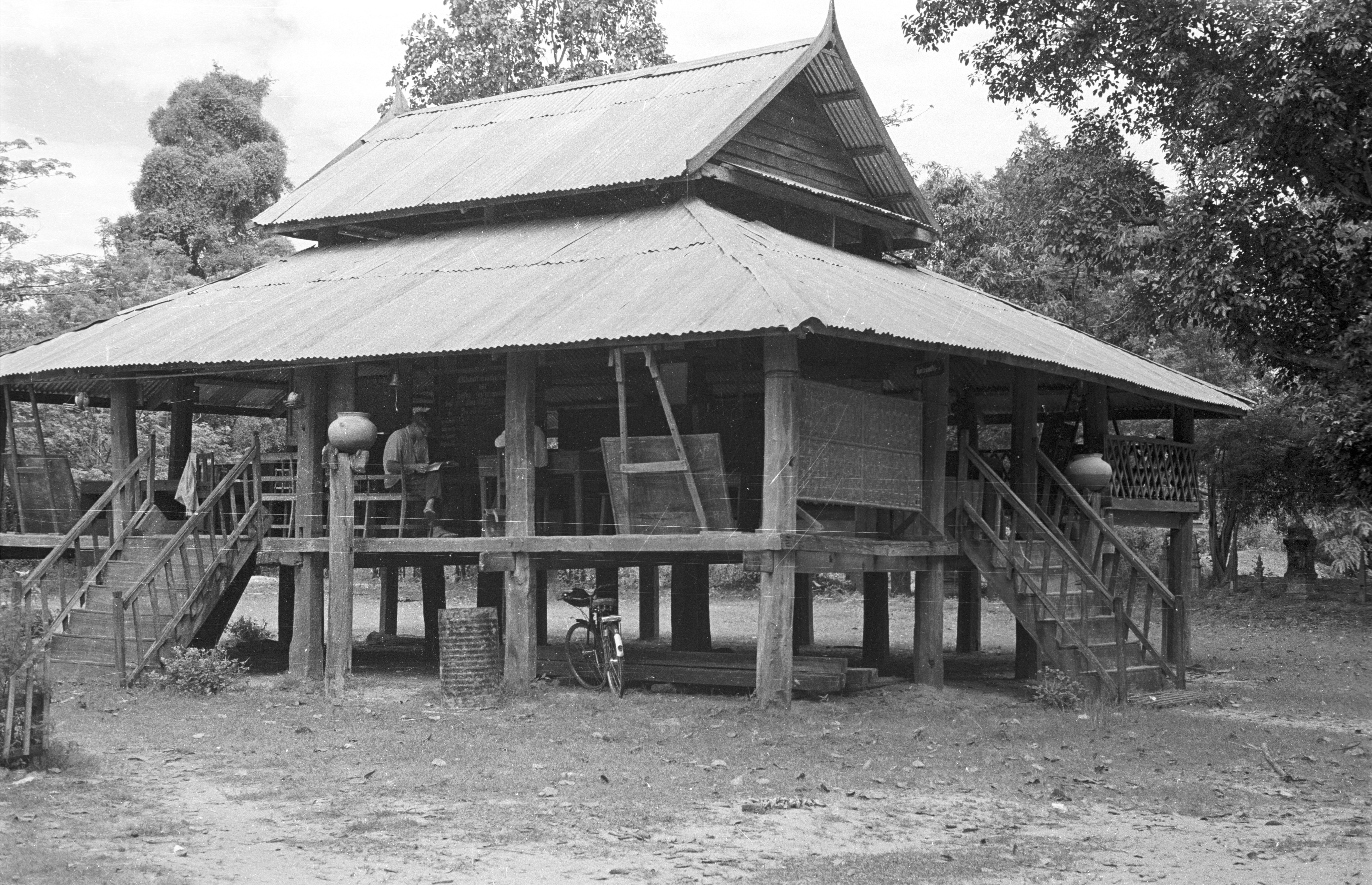 Sālā wat / school, Ban Nong Tun, Amphoe Muang, Changwat Maha Sarakham, Thailand, September 1963