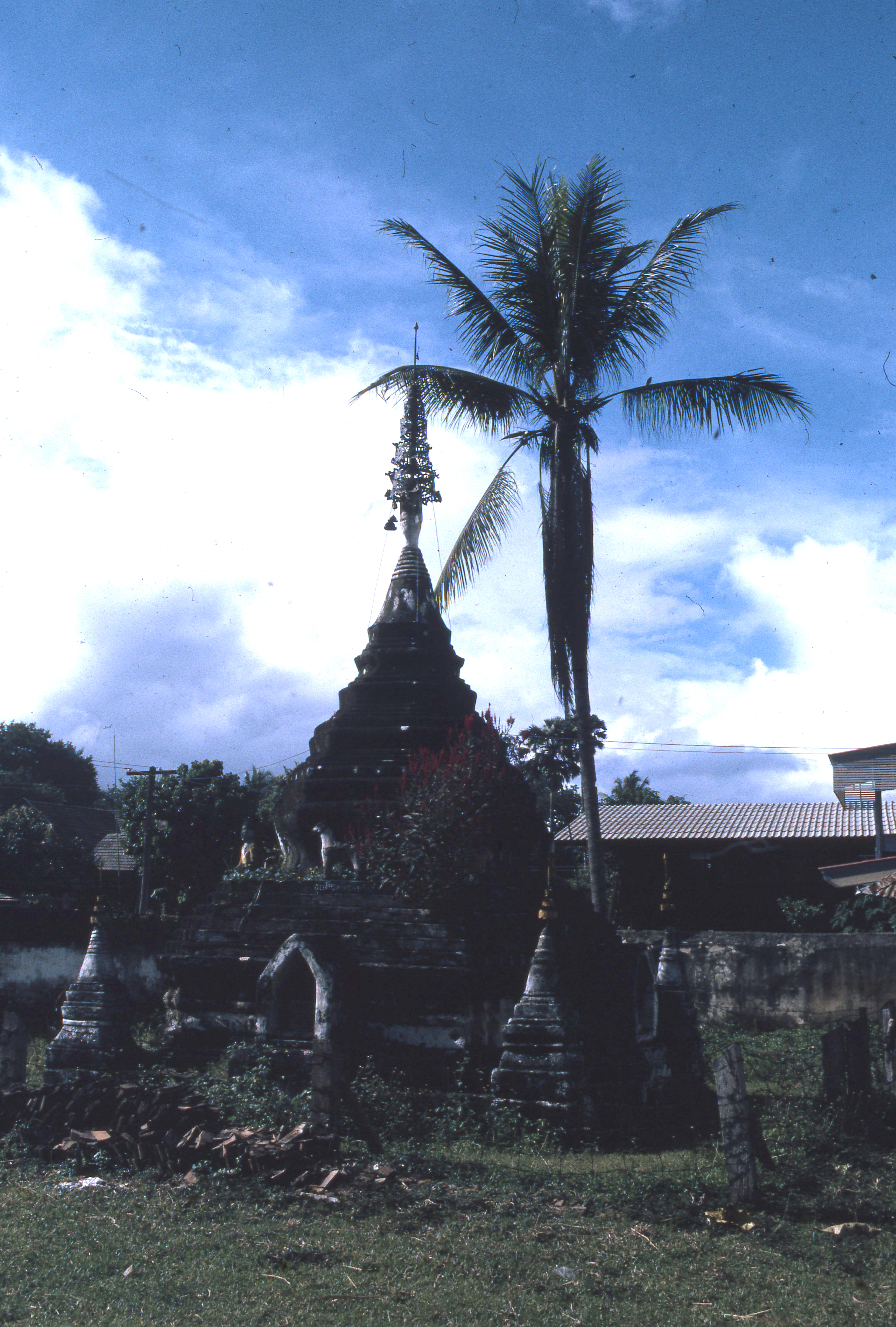 Wat Sitthimongkhon – general view, chēdī in wat grounds, 3 photos Amphoe Mae Sariang, Changwat Mae Hong Son, Thailand, September 1967