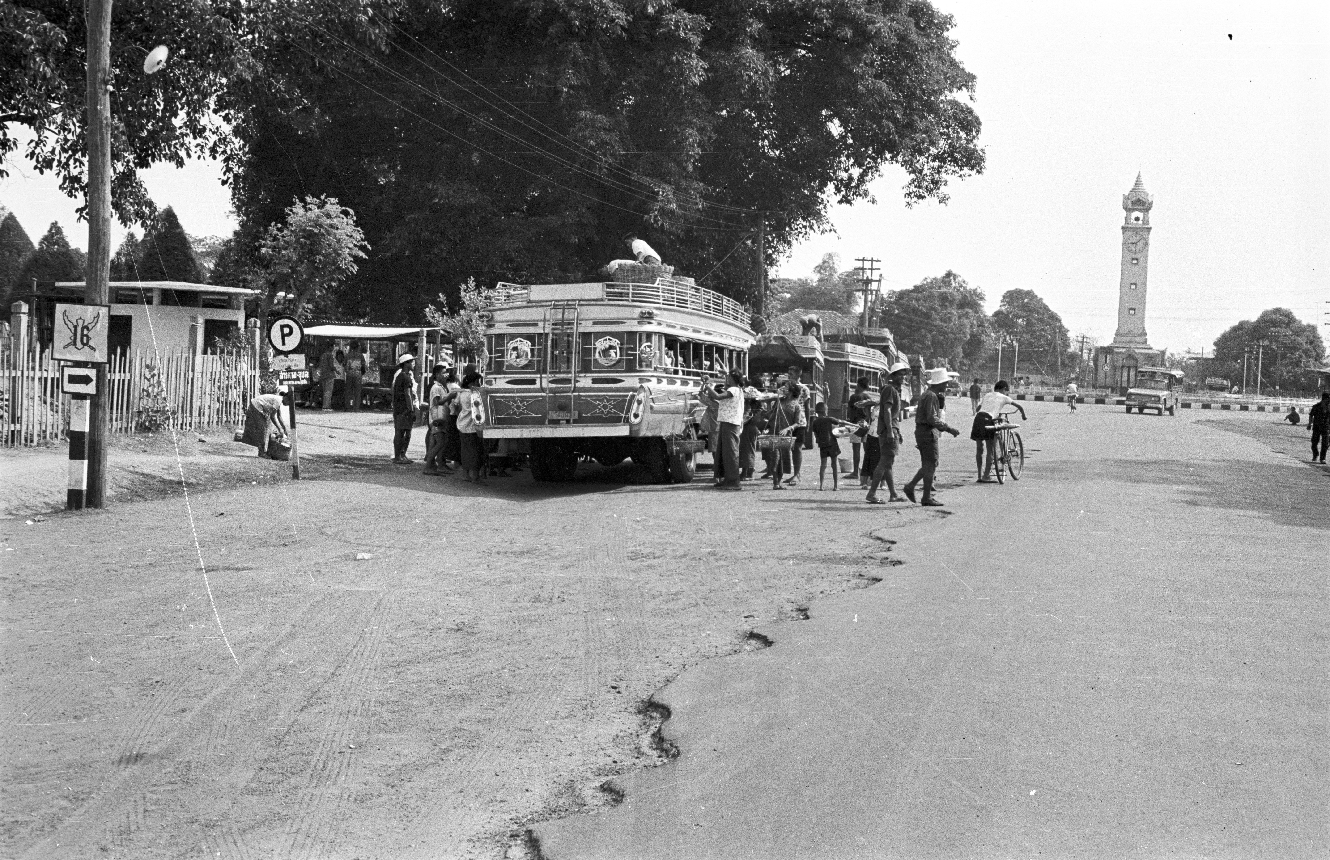 Bus stop, 2 photos, Changwat Maha Sarakham, Thailand, April 1964