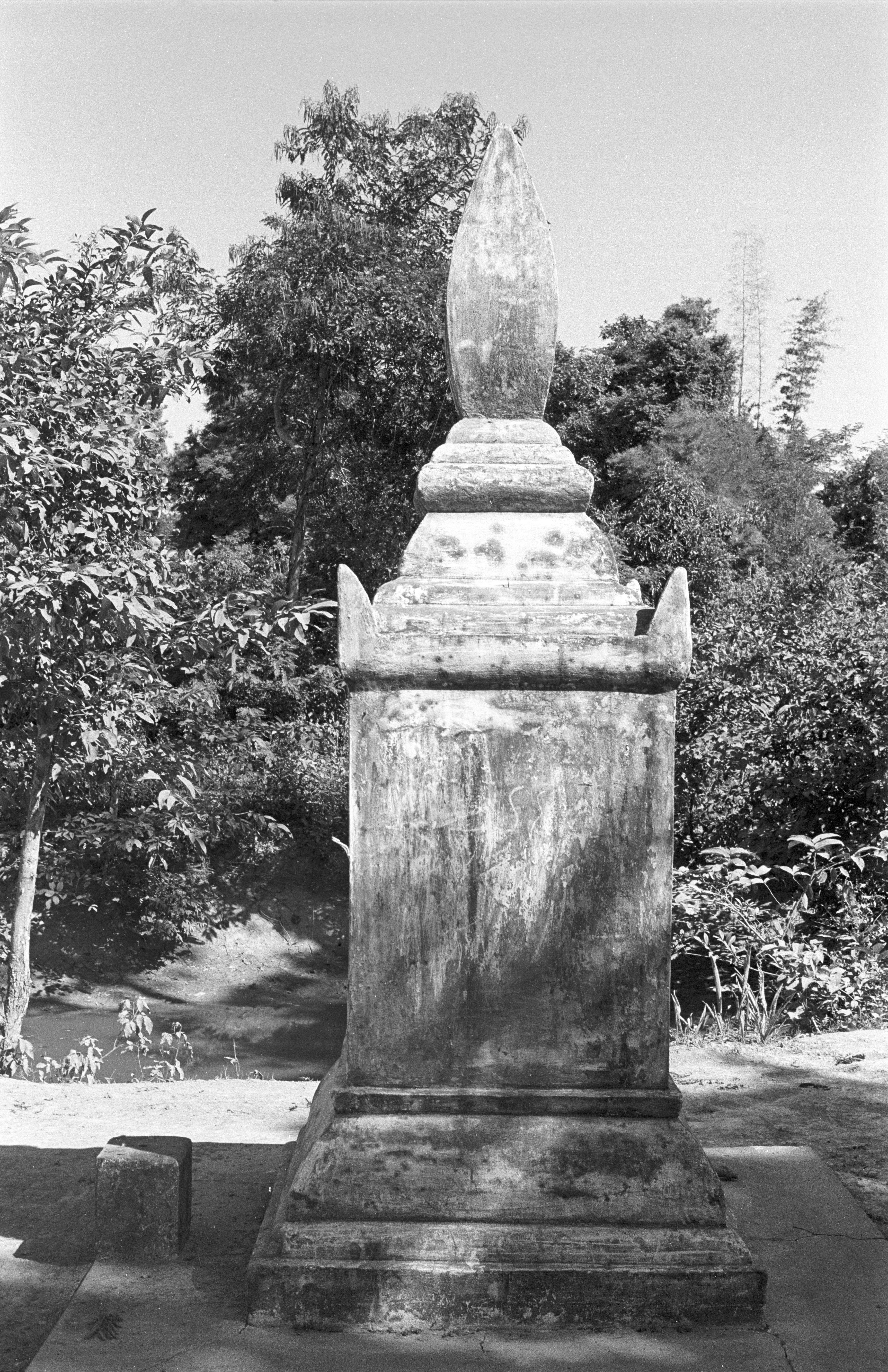 Thāt (reliquary) for deceased monk in wat; only one in wat, Ban Nong Sung, Changwat Mukdahan, Thailand, December 1963