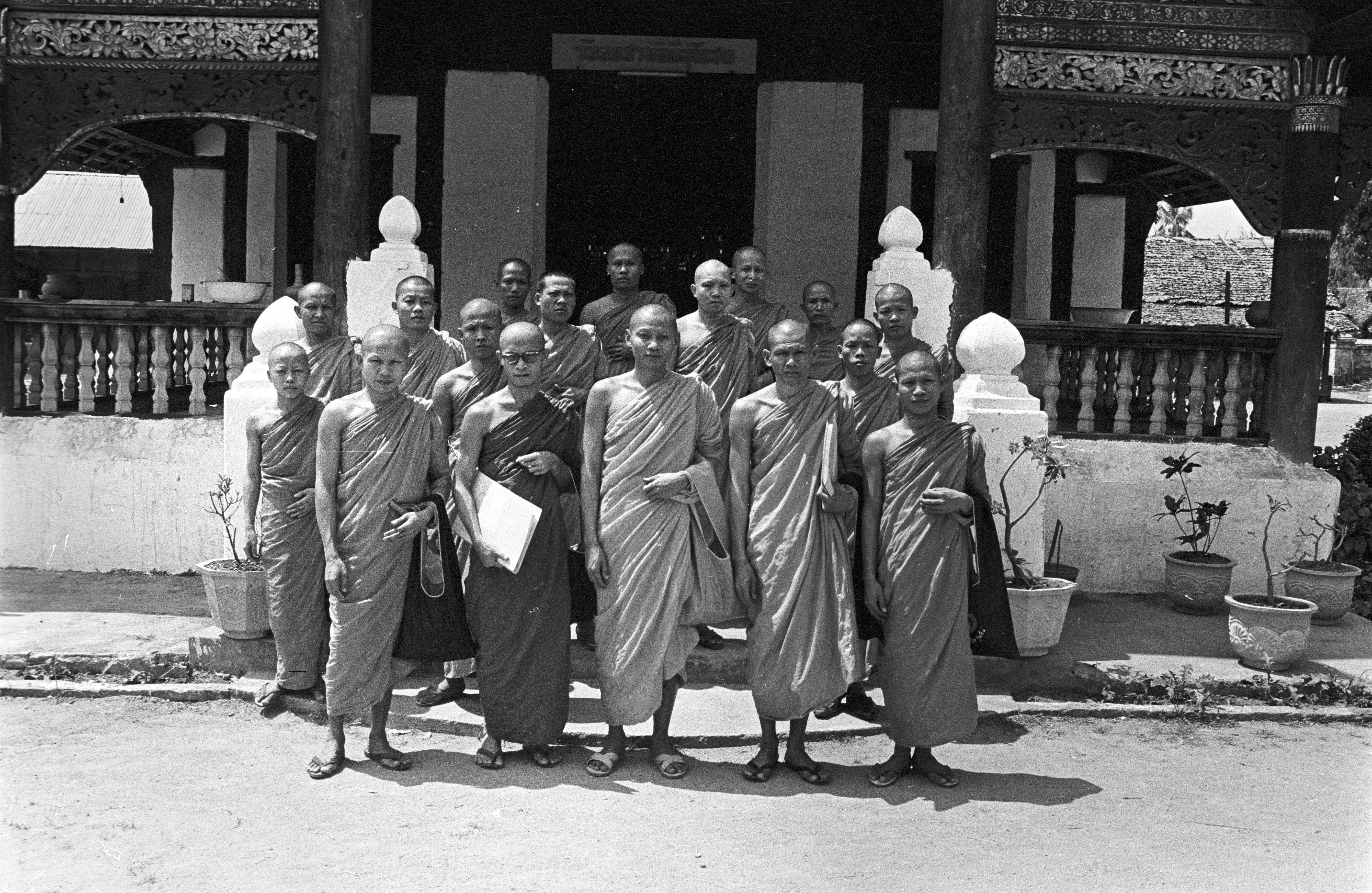Thammacārik (Buddhist missionary) monks at Wat Kittiwong, 2 photos, Amphoe Mae Sariang, Changwat Mae Hong Son, Thailand, March 1968