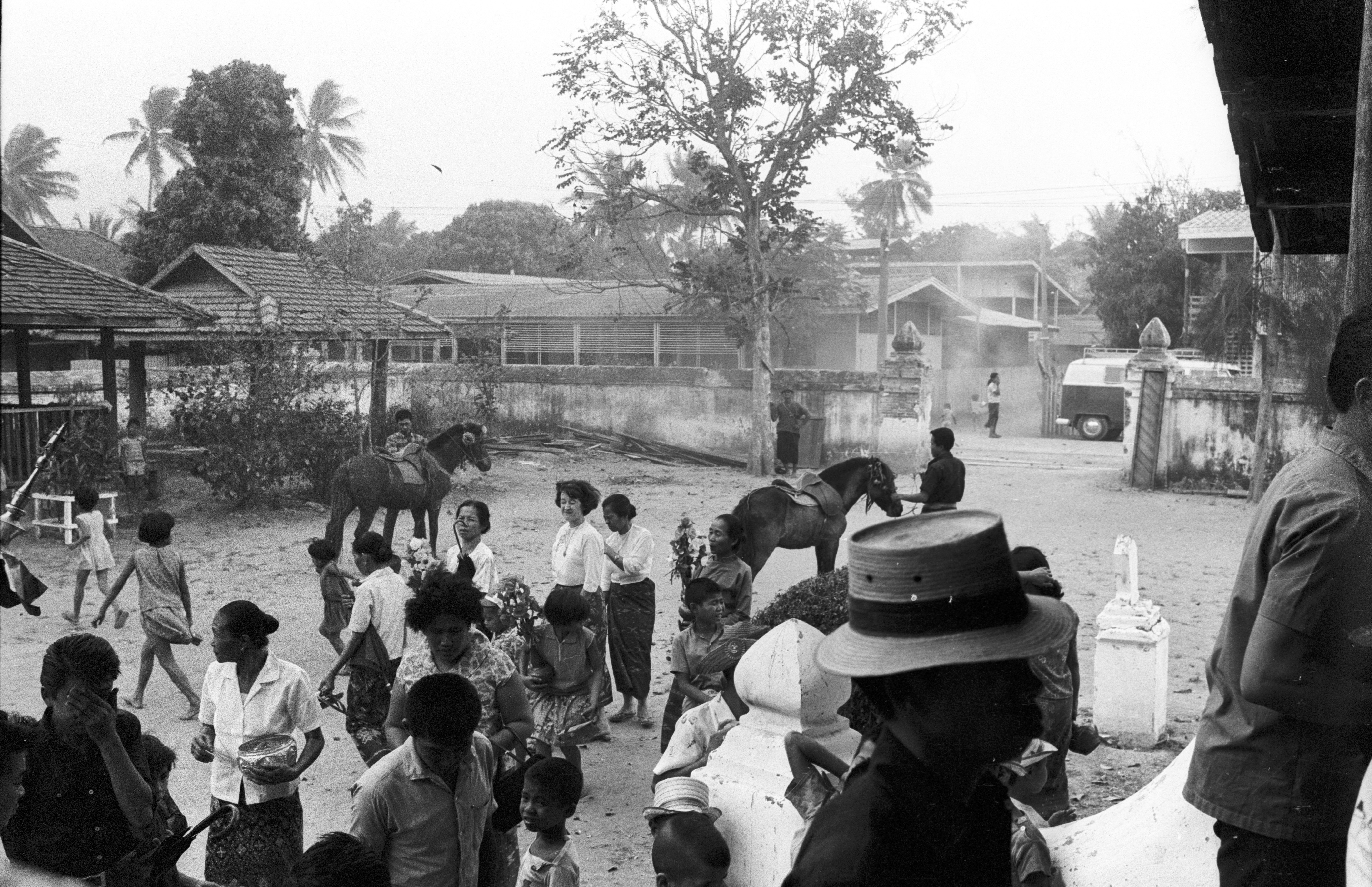 Ordination – Jane and women outside ordination hall of Wat Kittiwong, Amphoe Mae Sariang, Changwat Mae Hong Son, Thailand, March 1968